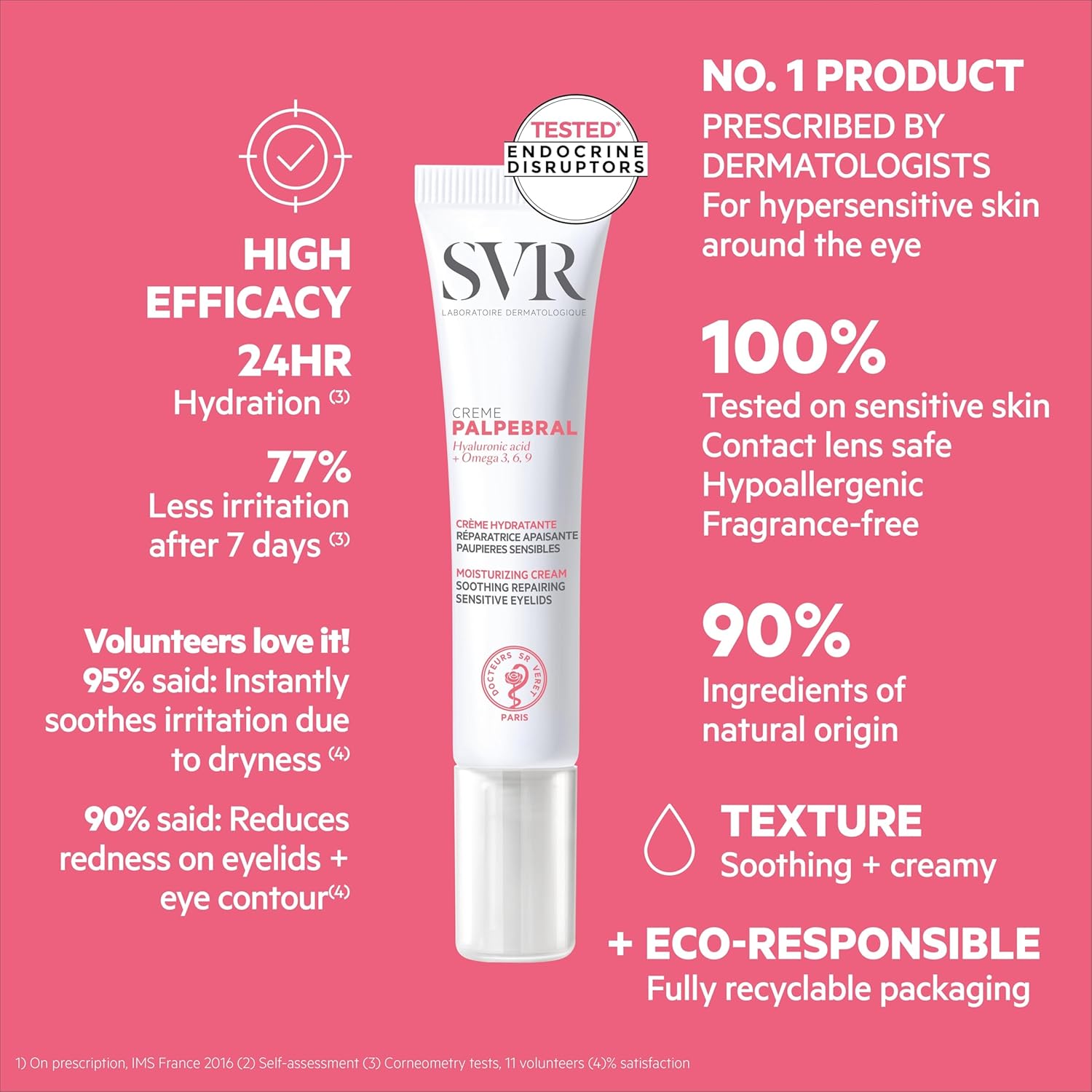 I have recently struggled with very sensitive skin around my eyes. The La Mer and Farmhouse Fresh creams that used to be fine, suddenly made the skin swollen, red, and rough. It was so frustrating! I discovered this cream after researching how to deal with sensitive skin around the eyes. I used it for the first time yesterday. At that time my skin was red, the texture was dry and flaky, and it was sensitive. Imagine my amazement when, after applying three times (morning, evening, and morning again), my eyes were back to normal! No more red. No more scaly skin. No more sensitivity. I am sold on this product and will continue to use it from now on. Goodbye, La Mer, and hello to SVR. It is also going to save me a TON of money!Update:I have now used this cream for over a week. My eyes are back to normal, with no more redness, dryness, or irritation. Again, I highly recommend it to you to use!