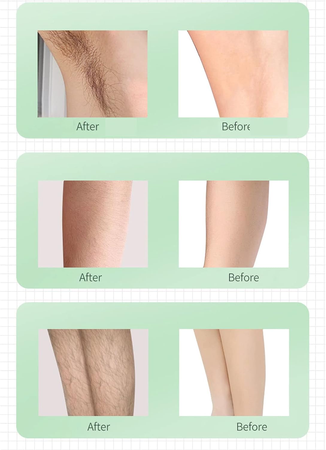 5. Brede compatibiliteit: geschikt voor gebruik op alle lichaamsdelen en biedt een veelzijdige ontharingsoplossing voor het hele lichaam.