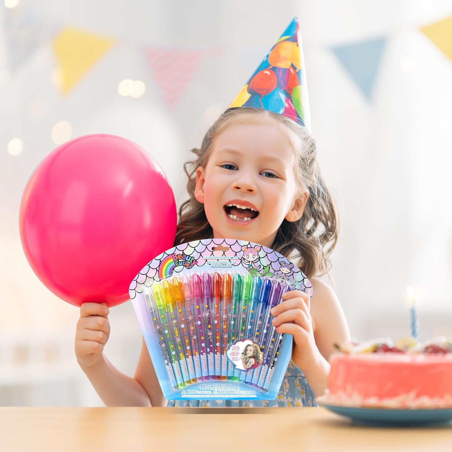 Inspire creativity with Mermaid Magic: Let your imagination run wild with these enchanting mermaid themed glitter gel pens. Their whimsical designs inspire fun and creativity, making them an excellent gift for artists, students and anyone who loves mermaids.