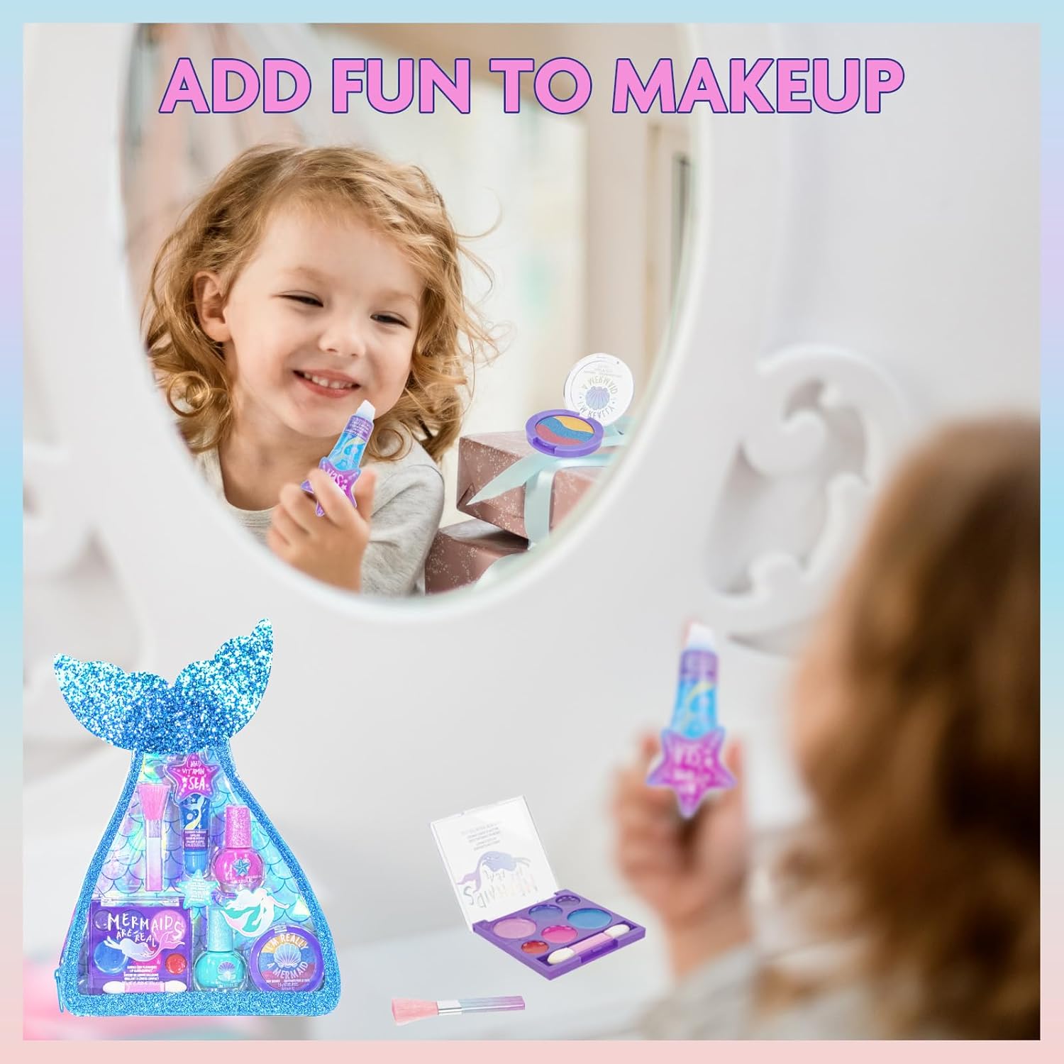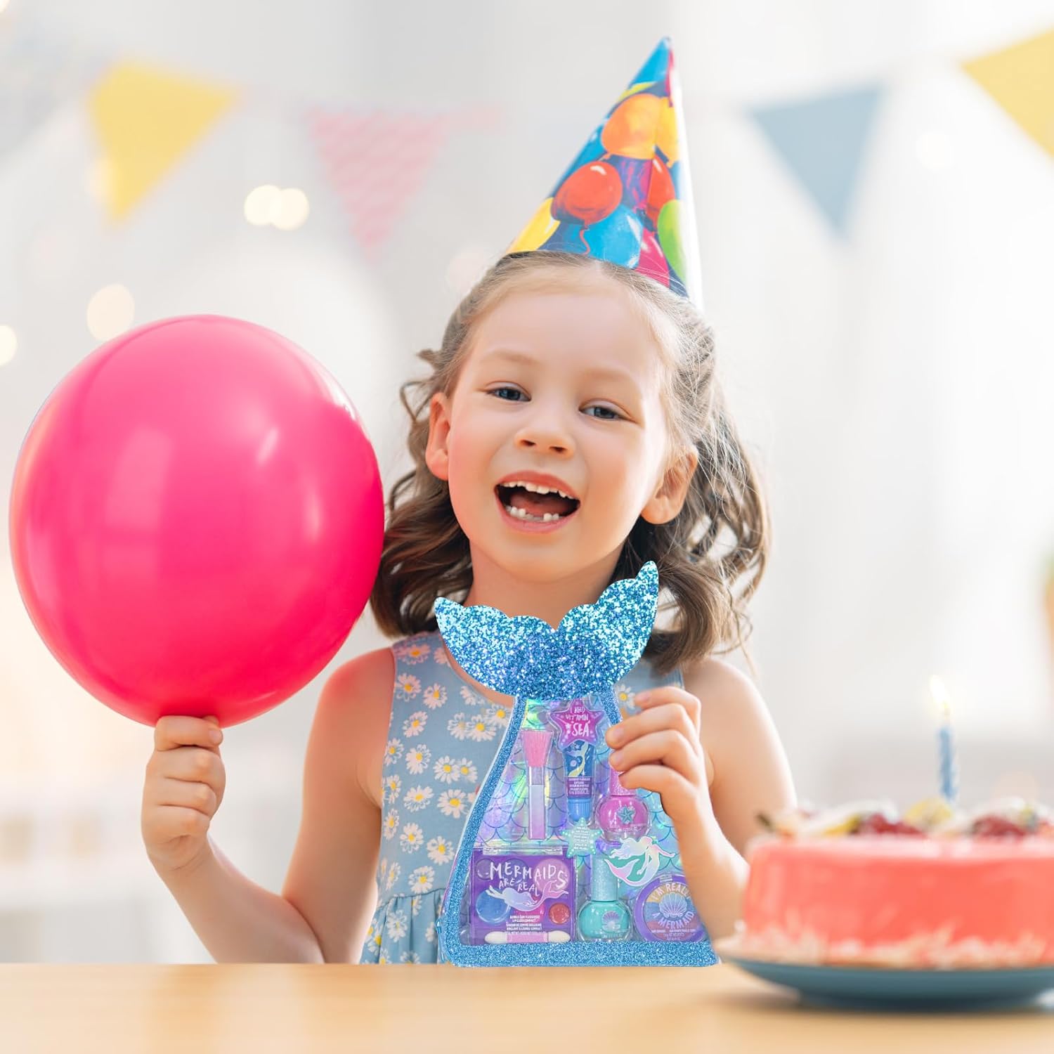 Townley Girl Mermaid Vibes-make-upset met 8 stuks, inclusief lipgloss, nagellak, body Shimmer en meer in zeemeermintas, vanaf 3 jaar voor feestjes, logeerpartijen en make-overs