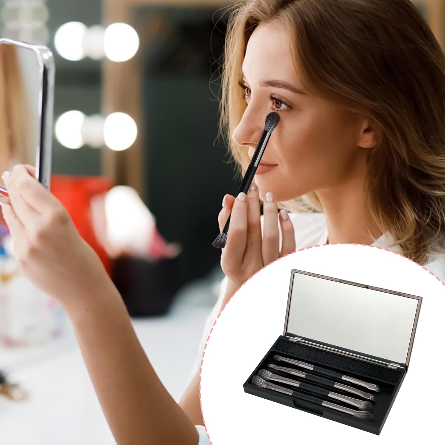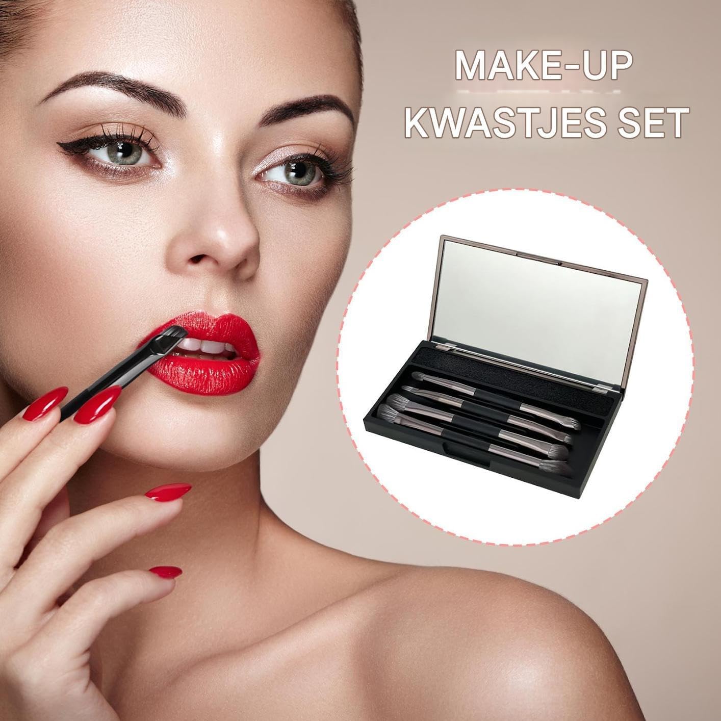 Travel Makeup Brush Set with Case, 4X Double-Ended Professional Makeup Brushes for Face, Eyes, and Lips, Compact Portable Cosmetic Tools for Women, Ideal for Business Trips, Vacations, Dorms