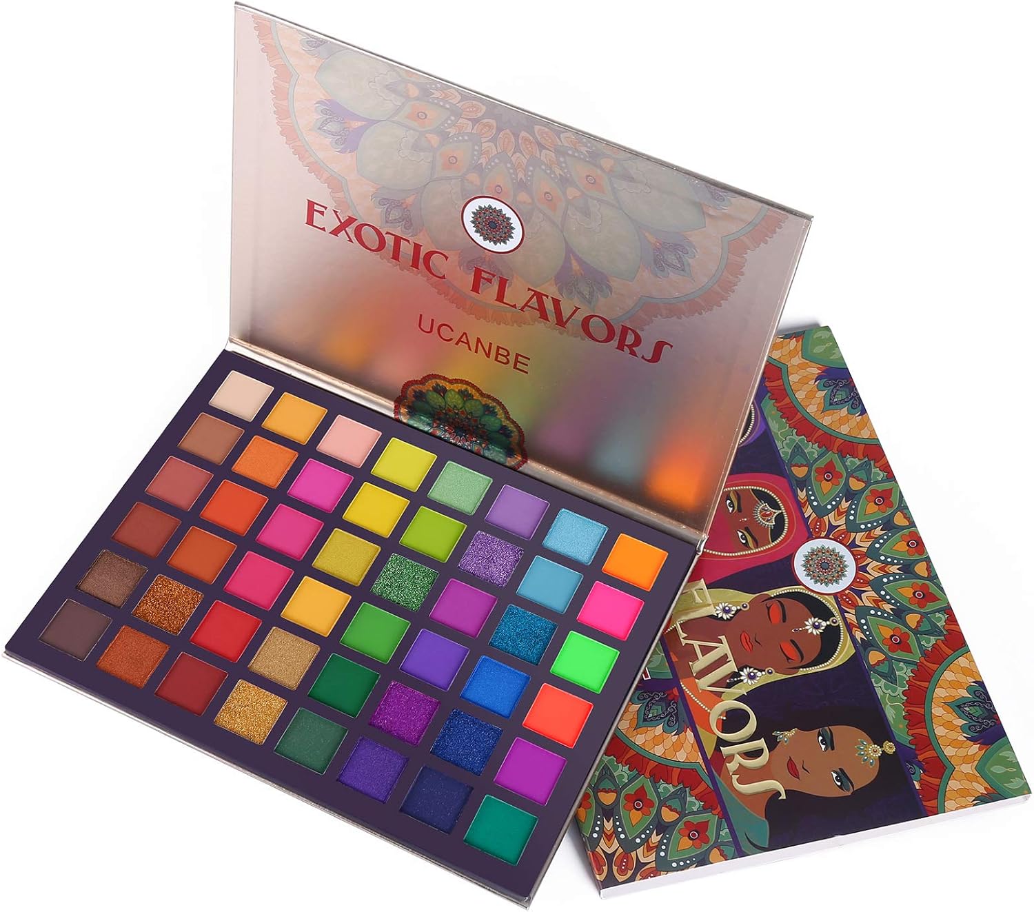 Ucanbe Exotic Flavors Oogschaduw-palet, professionele make-up, 48 tinten, matte glans, glitter, oogschaduw, sterk gepigmenteerde oogschaduw, cosmetica