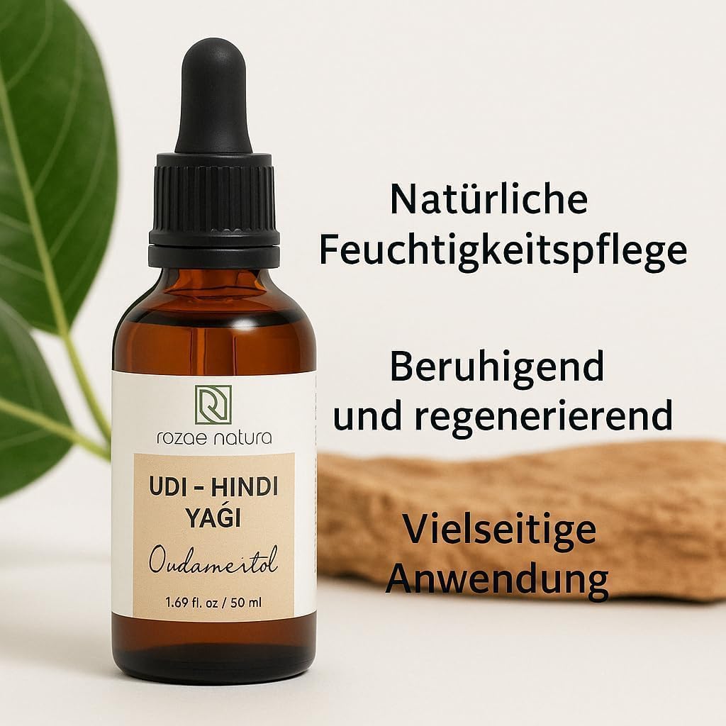 Eagle tree oil – Udi Hindi oil 50 ml | natural care oil for skin and hair. Our eagle tree oil, also known as Udi Hindi oil, is a high-quality, natural care oil suitable for both skin and hair. With its unique composition, it provides intensive moisture and helps soothe and regenerate the skin. The oil is extracted from the best ingredients and is free from harmful additives, making it ideal for sensitive skin. Key features: Natural care: our Udi Hindi oil is a pure, vegetable oil that provides your skin and hair with natural nutrients. Moisturizing: It moisturizes for a long time and helps soothe dry skin. Soothing and regenerating: perfect for daily care of skin and hair, it promotes regeneration and leaves a soft, supple skin feeling. Versatile: excellent for use on face, body and hair. Ideal for treating dry skin and hair loss. Use: Apply the oil sparingly to the skin or hair and massage it gently. For best results, use regularly. Why eagle tree oil? The eagle tree oil is known for its soothing and healing properties, which make it a valuable component of natural skin and hair care. It helps relieve skin irritations and provides healthy, shiny hair splendor. Pamper yourself with the power of nature and enjoy the benefits of this wonderful care oil. Get your eagle tree oil now – Udi Hindi oil 50ml for a gentle and natural care. Ideal for: dry skin, sensitive skin, hair loss regenerating skin care. Give your skin and hair the natural care they deserve!