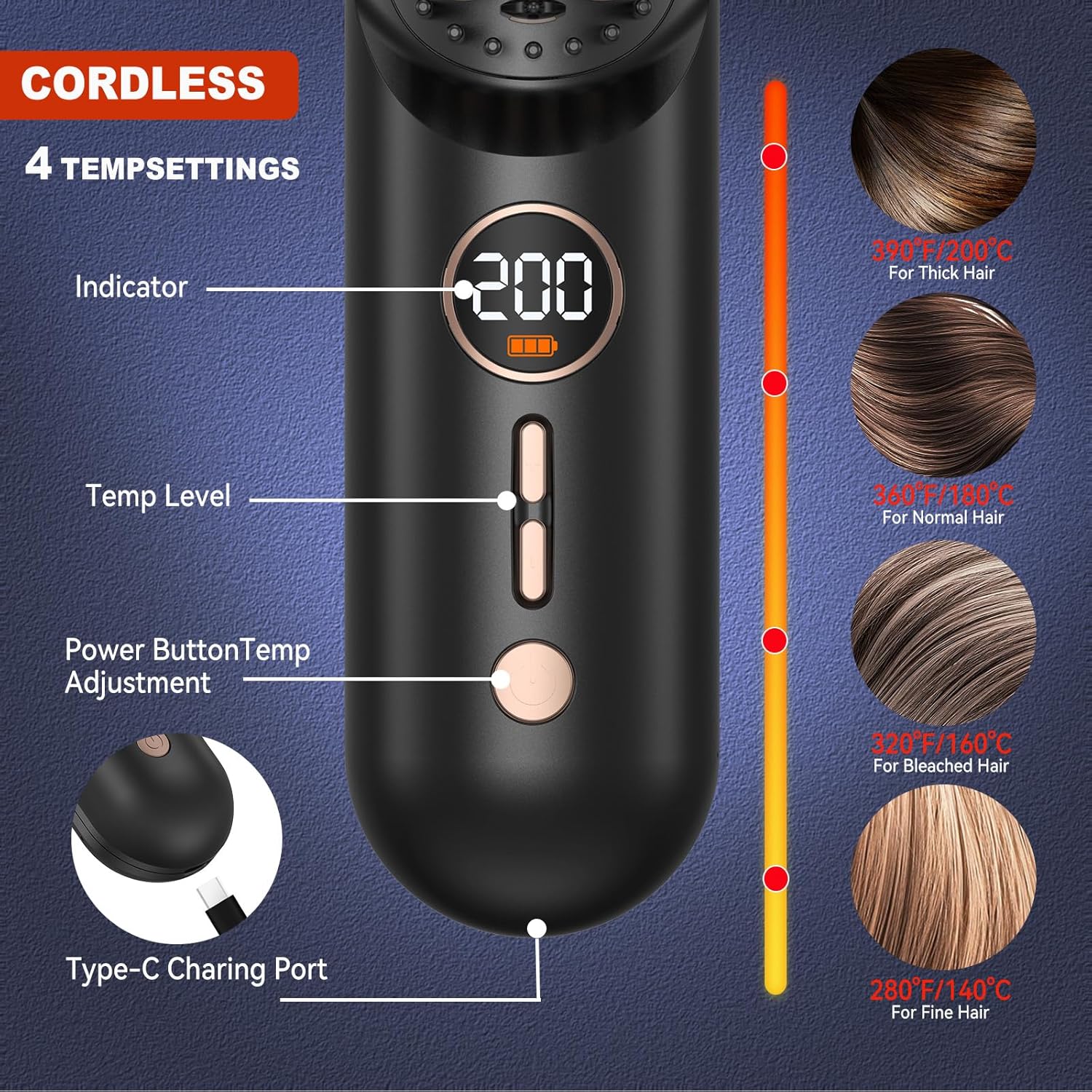 UKLISS Draadloze stijlborstel, 9000 mAh, verbeterde draagbare mini-stijltang Pro voor onderweg, stijlborstel, negatieve ionen-warmkam, draadloze stijltang voor vrouwen, USB, zwart