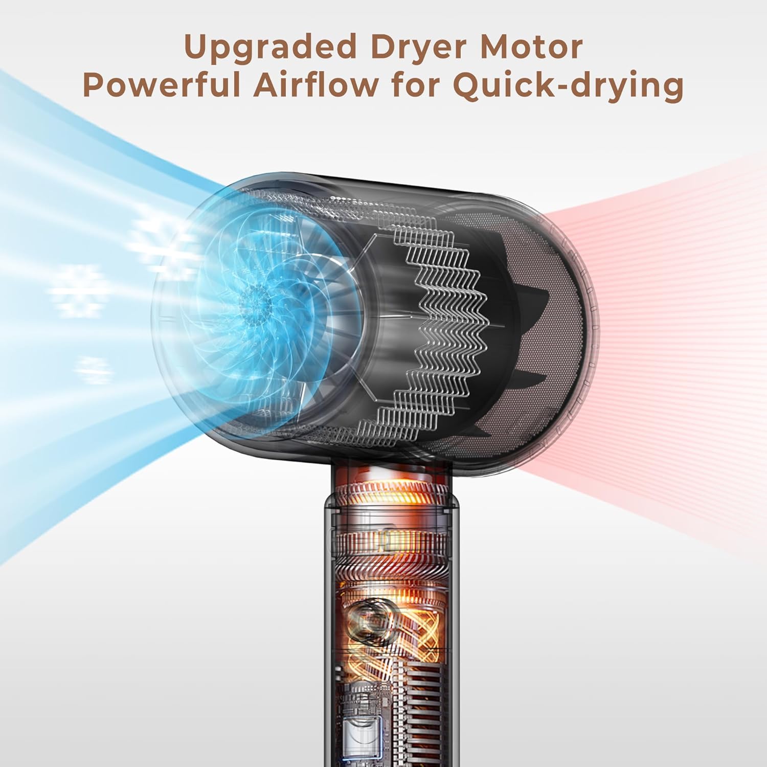 【4 temperatuurmodi voor verschillende behoeften】Met 3 warmtestanden (koud, warm, warm) voor verschillende styling- en droogbehoeften. Er is ook een extra modus met afwisselende luchtcirculatie tussen koude en warme lucht. Hete lucht helpt het haar snel te drogen, terwijl koude lucht de haarschubben vormt en sluit, waardoor thermische schade door het haar wordt verminderd.