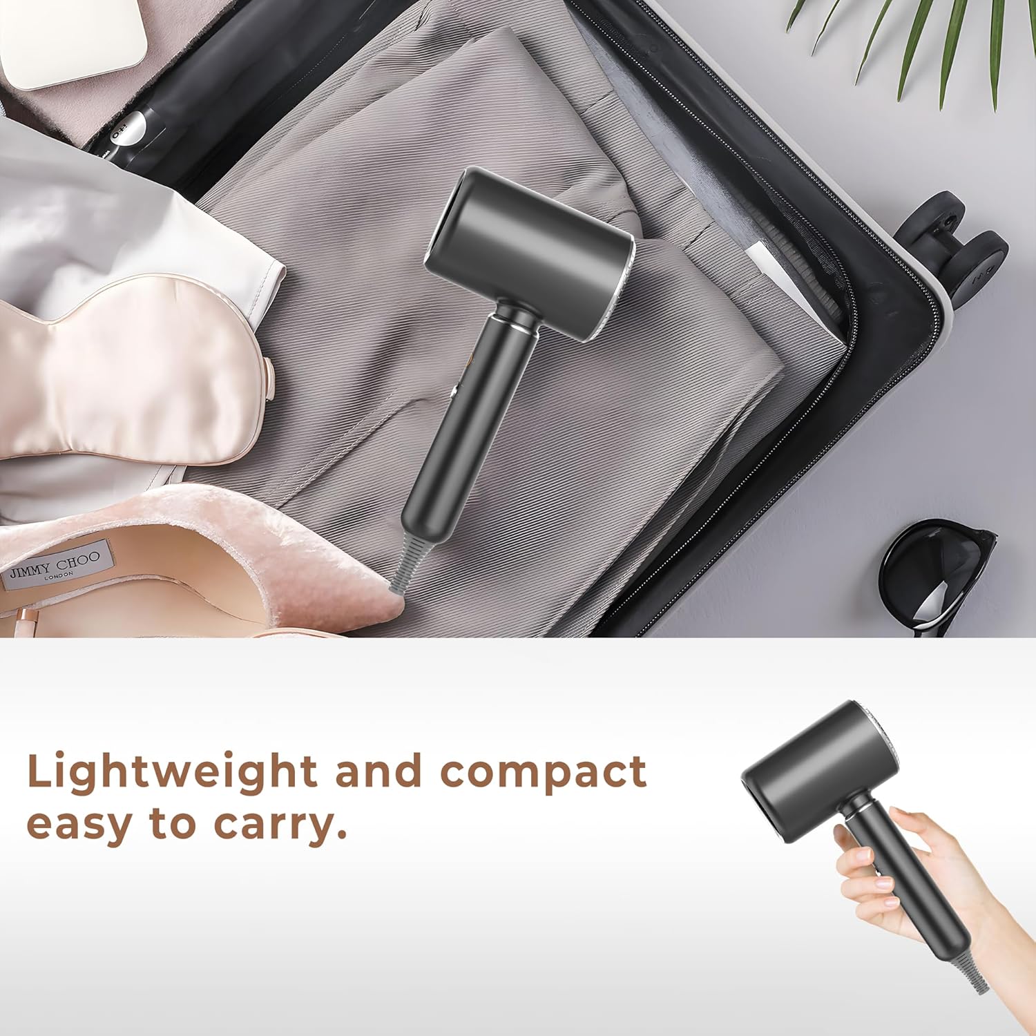 UKLISS Ionische haardroger voor reizen, 2200 W, krachtige haardroger met kruldiffuser en 3 haaraccessoires, haardroger, 4 temperatuurinstellingen, zwart/zilver