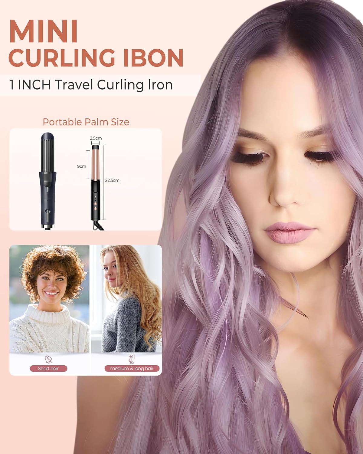 【Mini krultang 25 mm】 De krultang voor kort haar is ontworpen om prachtige en romantische krullen, zachte krullen en golven te creëren. Het produceert gelijkmatige warmte voor prachtige, langdurige stijlen met minder pluis. Kleine krultang geschikt voor halflang haar en kort haar