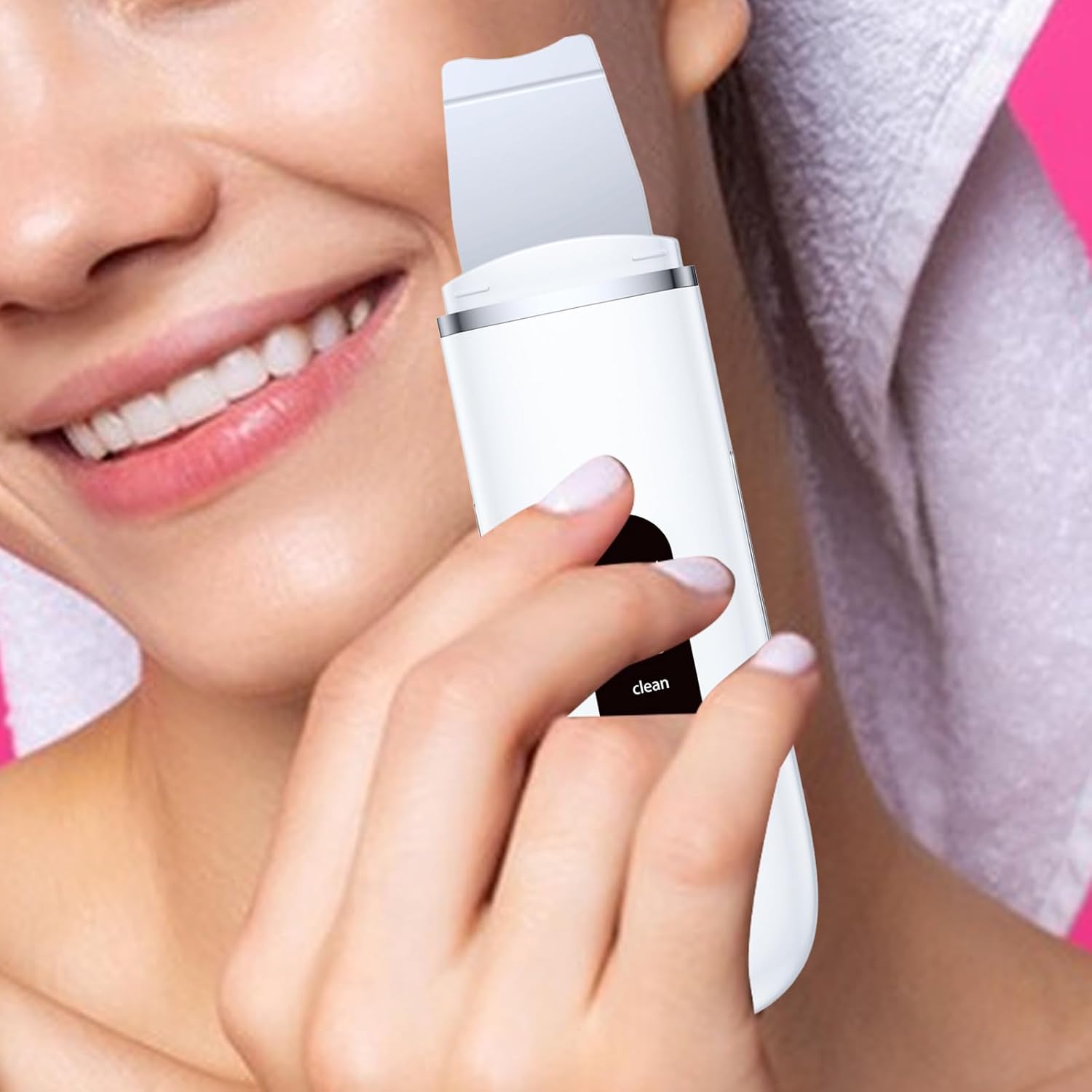 De Ultrasone Huidscrubber is een krachtig hulpmiddel dat mee-eters en whitehead effectief verwijdert, en fungeert als een zachte comedonextractor voor een helderdere en gladdere huid. Dit innovatieve apparaat maakt gebruik van ultrasone trillingen om de huid diep te reinigen en te exfoliëren, waardoor deze er gerevitaliseerd en verjongd uitziet.
