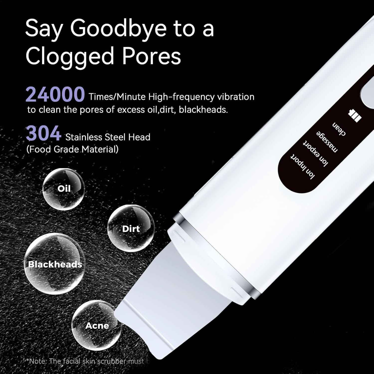 Ultrasone huidscrubber, hoofdhuid spatel gezicht scrubber | Facial Porie Cleaner, Beauty Instrument, Remover, Porie Cleanser Tool voor het verwijderen van