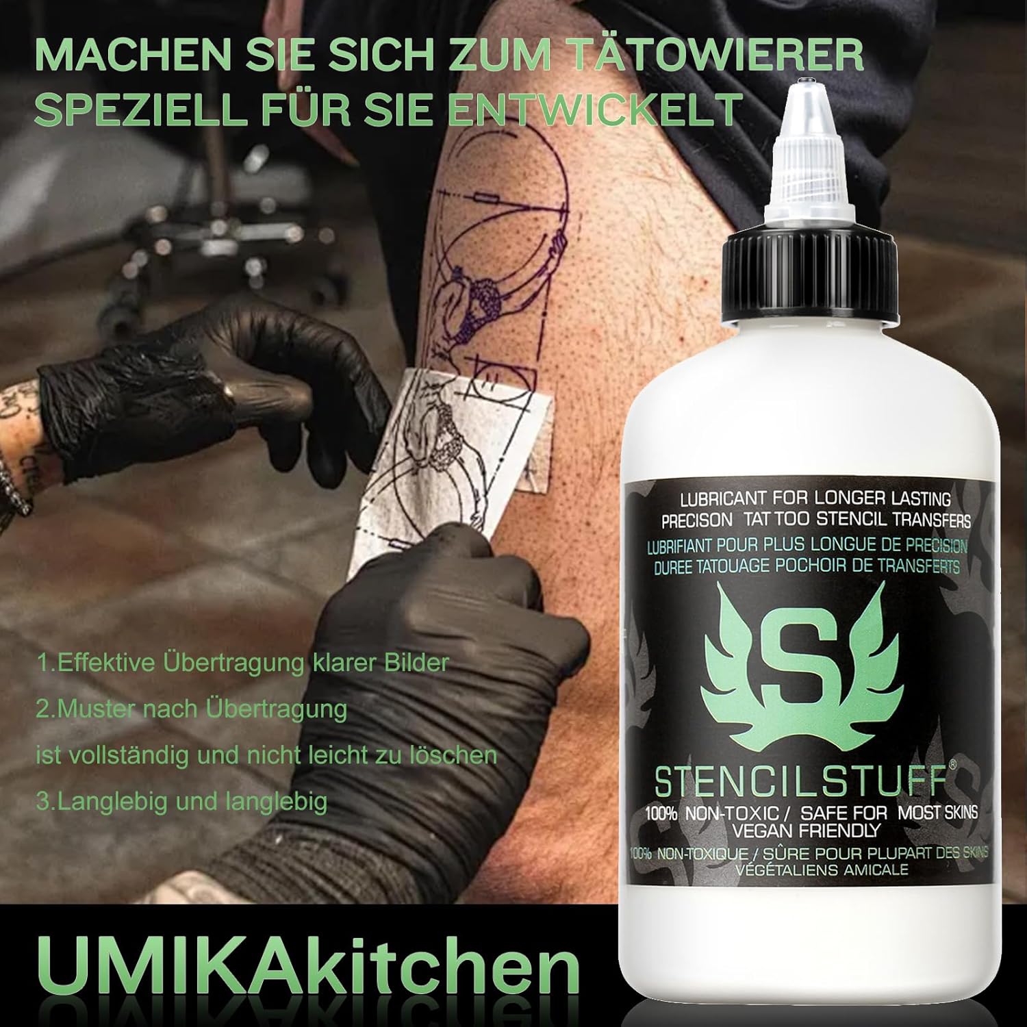 UMIKAkitchen Tattoo-transferolie: het sjabloonmateriaal maakt de overdracht zachter, schoner en scherper dan elke andere conventionele methode en voorkomt de mogelijkheid van kruisbesmetting.