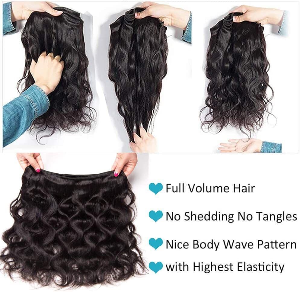 Body Wave Human Hair Bundles Quality: Double Strong Weft, Tight and Neat Weft, Thick and Healthy End, No Shedding, No Tangles, Soft and Full, Smooth and Silky Human Hair Bundles