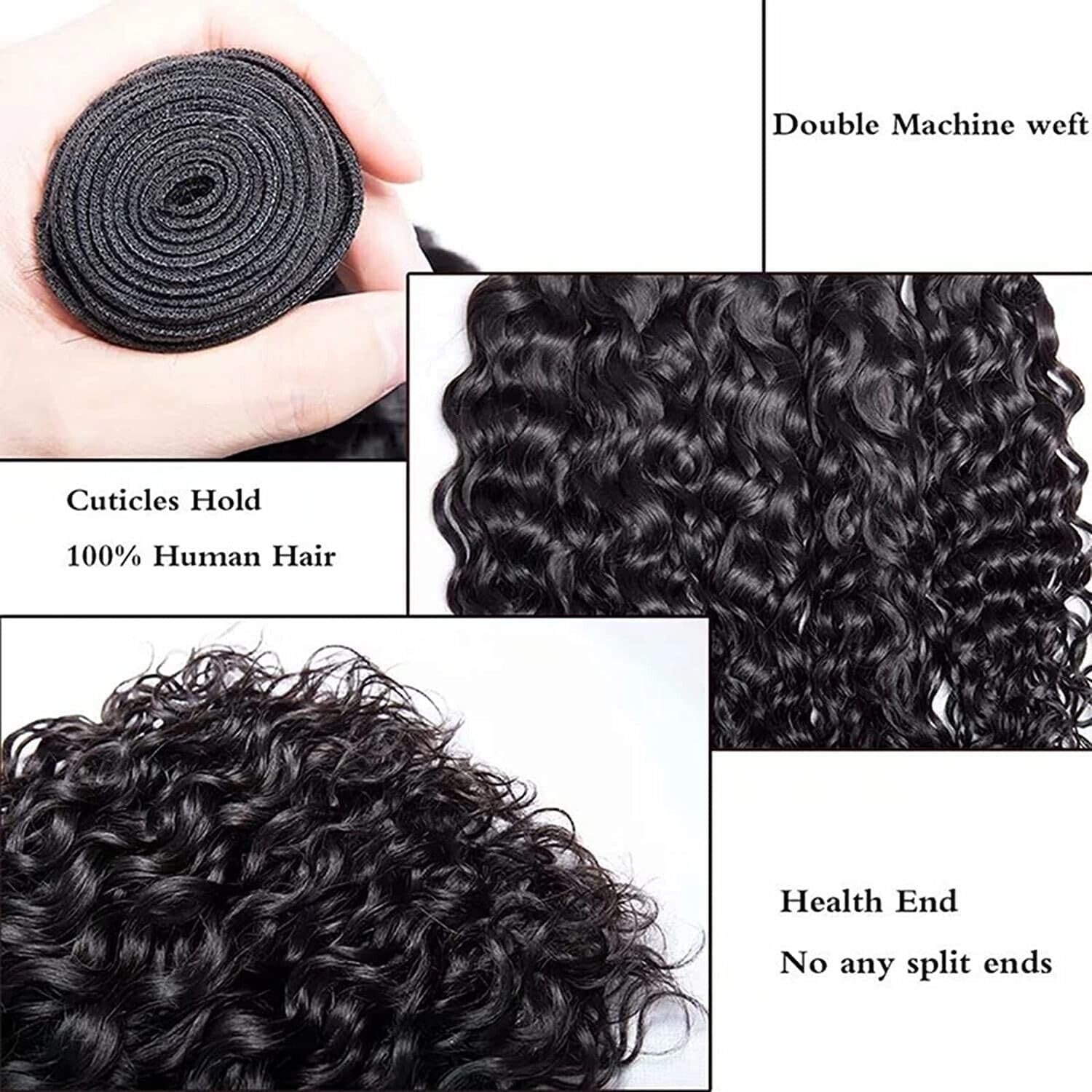 Virgin Human Hair Bundles Color: Natural Black Human Hair Bundles Water Wave,100% Virgin Weave Bundles Human Hair,Can be Bleached and Dyed, Colored as You Like.