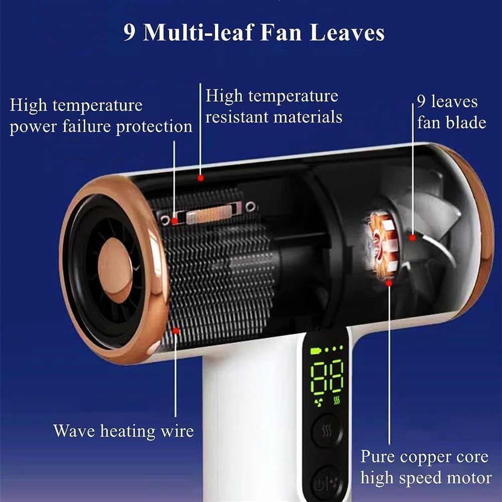 ❤ Warme en koude föhn: 200 W reisföhn met hete lucht en natuurlijke wind, 15.000 mAh batterij met grote capaciteit, kan 15-20 minuten draadloos worden geblazen met hete lucht, of ongeveer 2-3 uur met koude lucht.