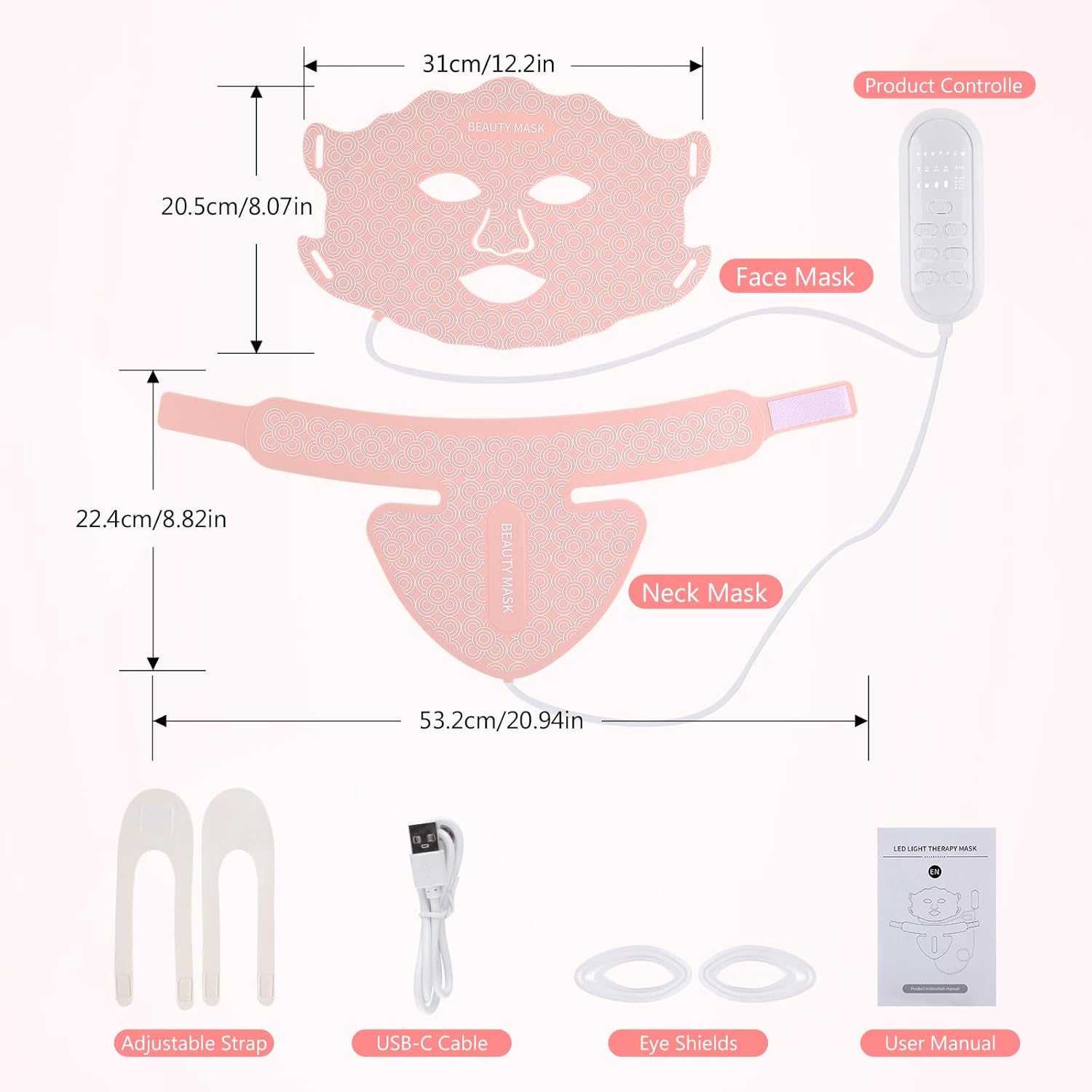Professionele led-gezichts- en halsverzorging voor thuis: ons led-masker voor gezicht en hals combineert 175 hoogwaardige led-lichtkralen (95 voor het gezicht, 80 voor de hals) om een volledige dekking van gezicht, hals en decolleté te garanderen. Geniet comfortabel thuis van salonachtige lichttherapie en maskerbehandelingen zonder dure salonbezoeken. Het led-gezichtsmasker lichttherapie helpt bij rimpels, pigmentatie en huidversteviging, terwijl het infrarood masker diep in de huidlagen doordringt voor maximale werkzaamheid.