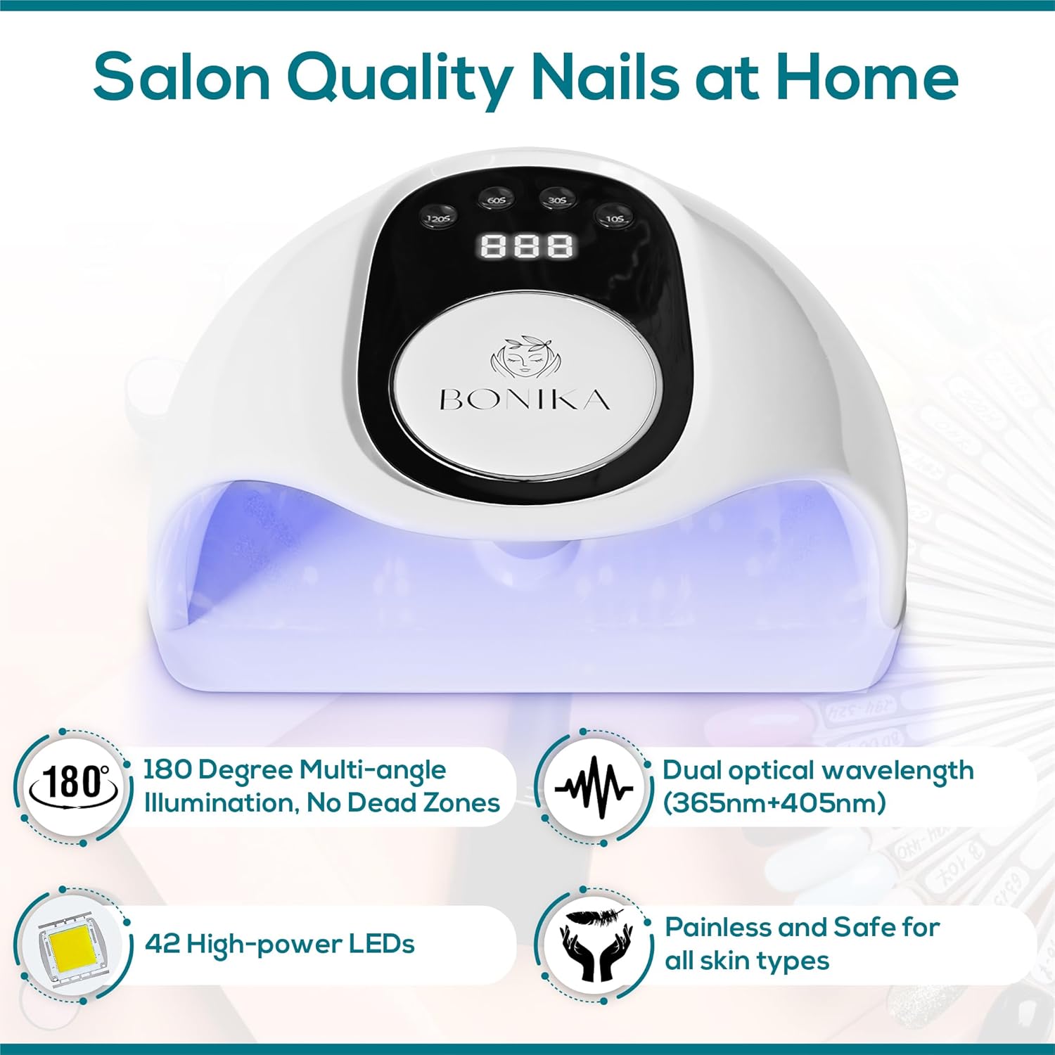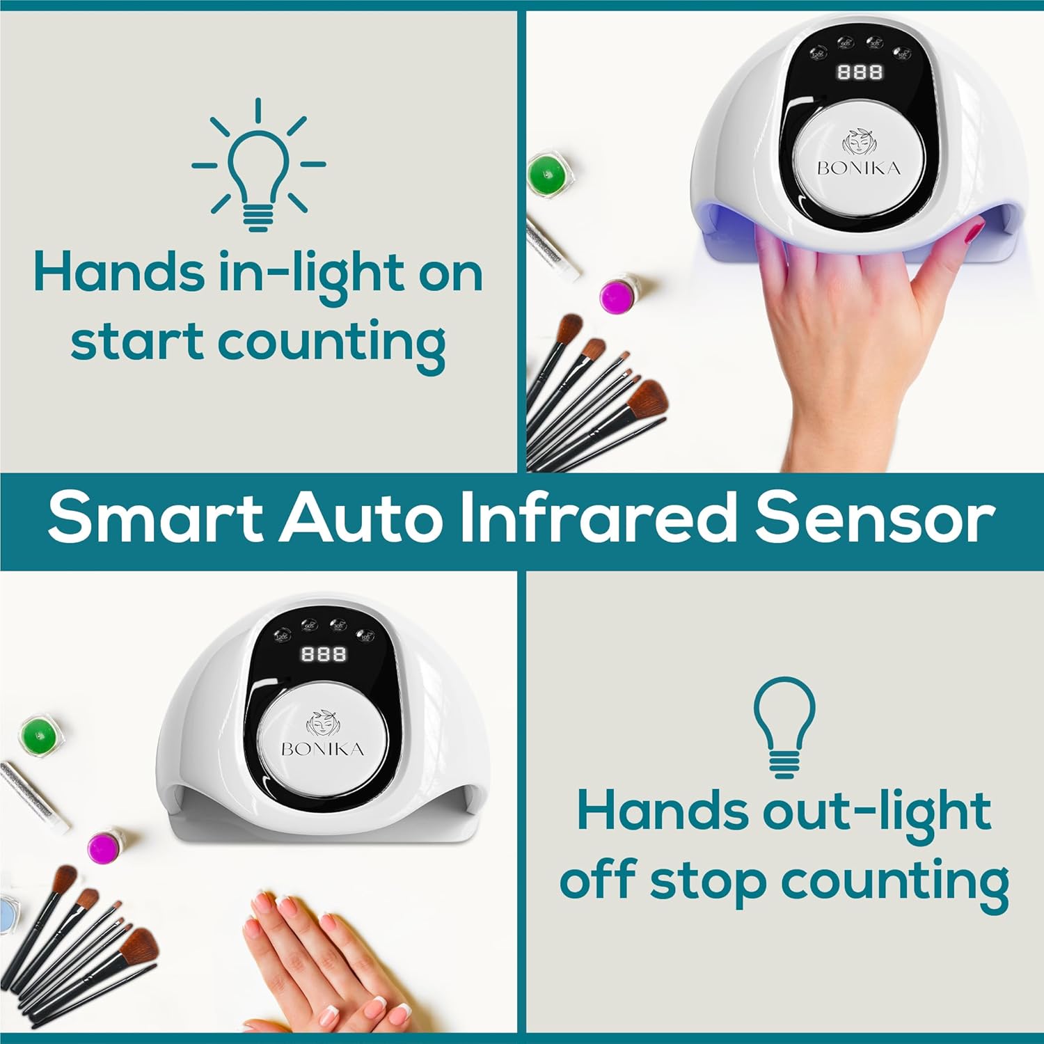 uv-nagellamp van Bonika, 168 W led-gelnagellampen, nageldroger, uv-lampen voor gelnagels, 4 timers, met automatische sensor, professioneel