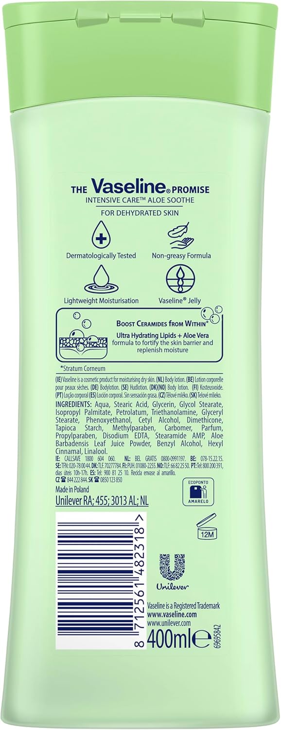 Vaseline Intensive Care Aloe Soothe Bodylotion, voor 48 uur hydratatie en verzachting van de droge huid – 400 ml