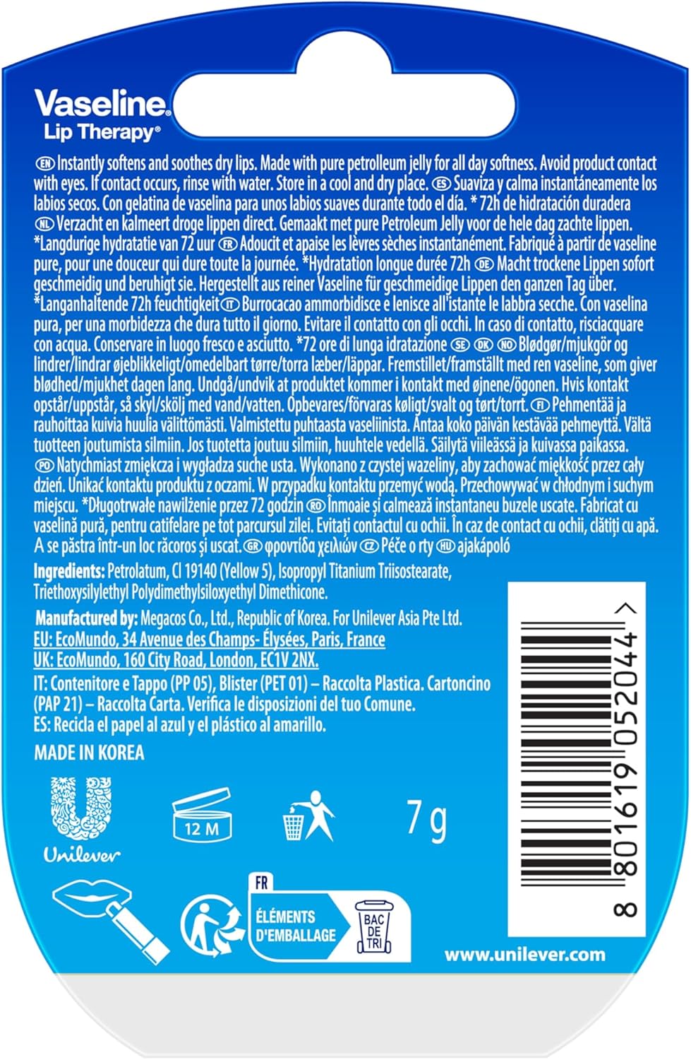 Natuurlijke Ingredienten – Gemaakt van pure Vaseline voor landgurig Vocht