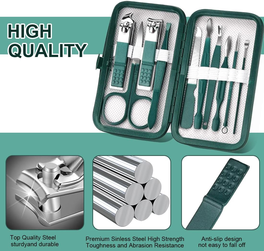 VBKITW Nail Clippers 10-Piece Manicure Pedicure Set Stainless Steel Tool Professional Beauty Nail Care Set for Home Travel