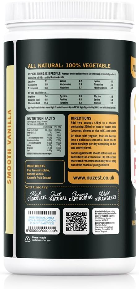 GROTE ALLERGIENVRIJ – Ons erwteneiwitisolaat is vrij van alle belangrijke allergenen en niet-GGO. Vrij van lactose, gluten, zuivelproducten, lectines, soja, tandvlees, vulstoffen en maskeermiddelen. We zijn er trots op dat we Keto-compatibel en geschikt zijn voor iedereen; inclusief primaal, paleo, vegetarisch, veganistisch, Halal, volwassenen en atleten.