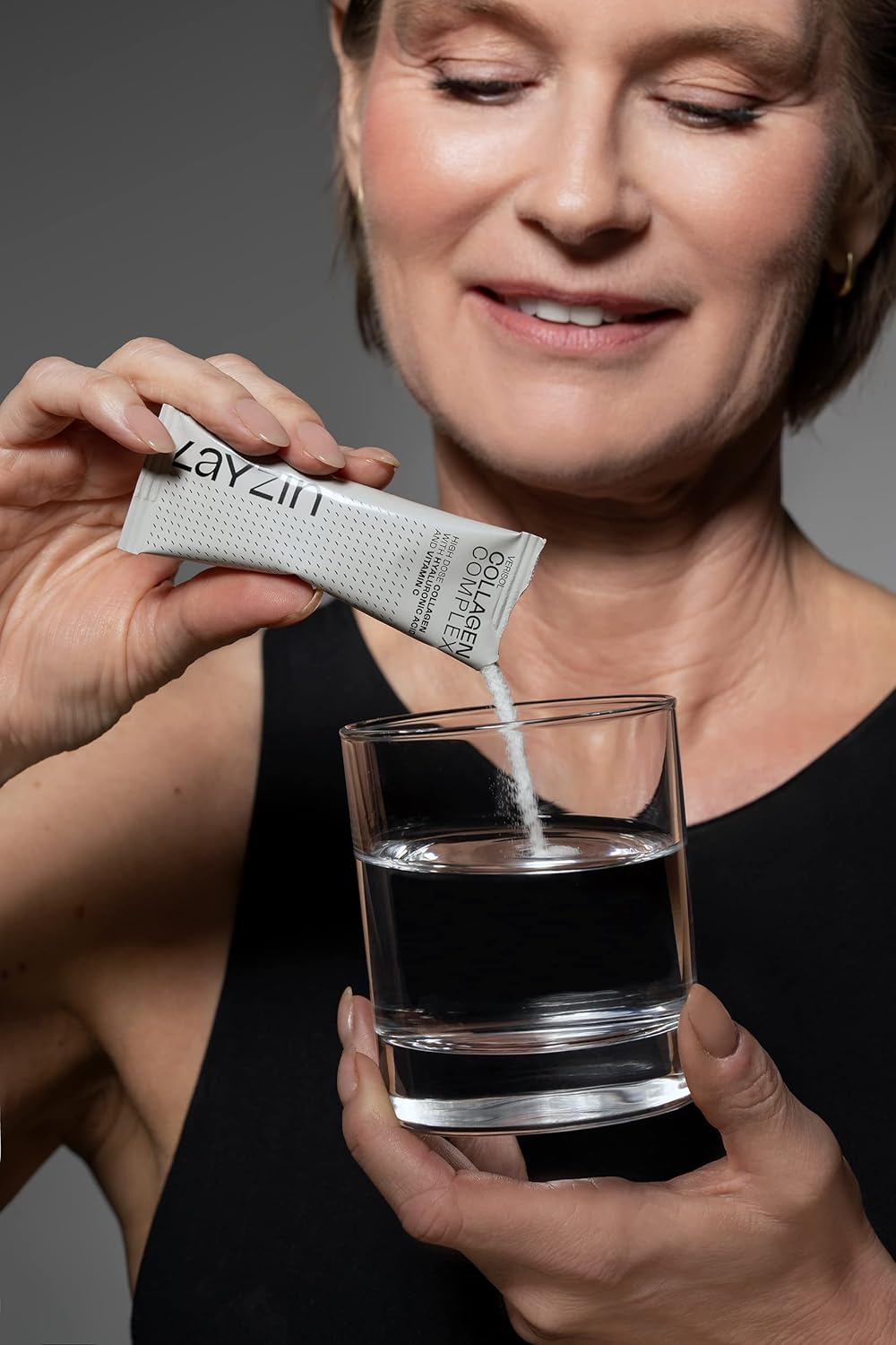 Layzin Verisol Collagen Complex combineert gepatenteerd Verisol-collageen met vitamine C en hyaluronzuur. Het bevordert een stevige teint en huidverjonging van binnenuit. Rimpels en fijne lijntjes worden ook verminderd.