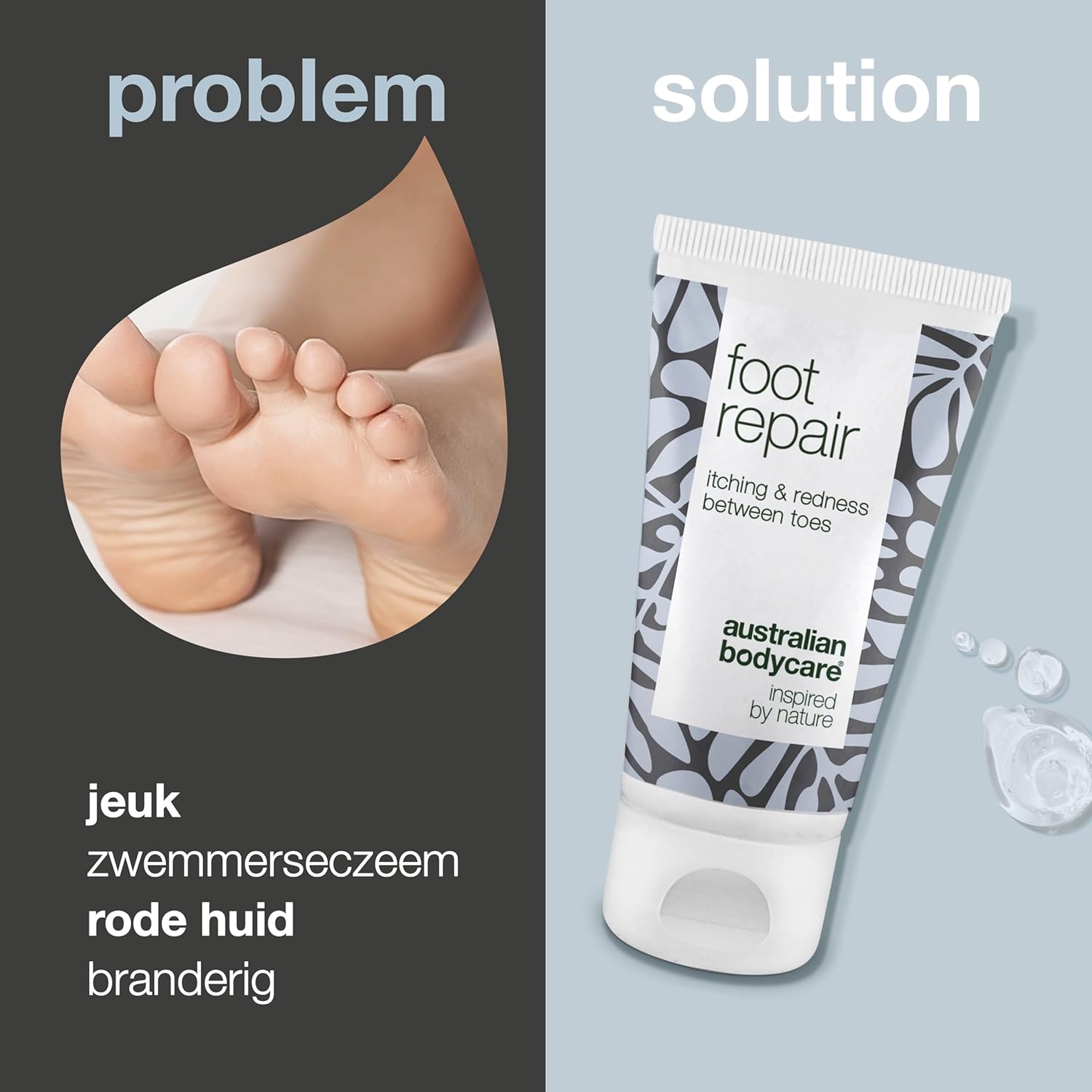 🌿 Productinformatie: wat zit er in het product? Foot Repair bevat 100% natuurlijke, Australische theeboomolie. De theeboomolie komt overeen met farmaceutische kwaliteit. Alle producten van Australian Bodycare zijn dermatologisch getest en 100% veganistisch.