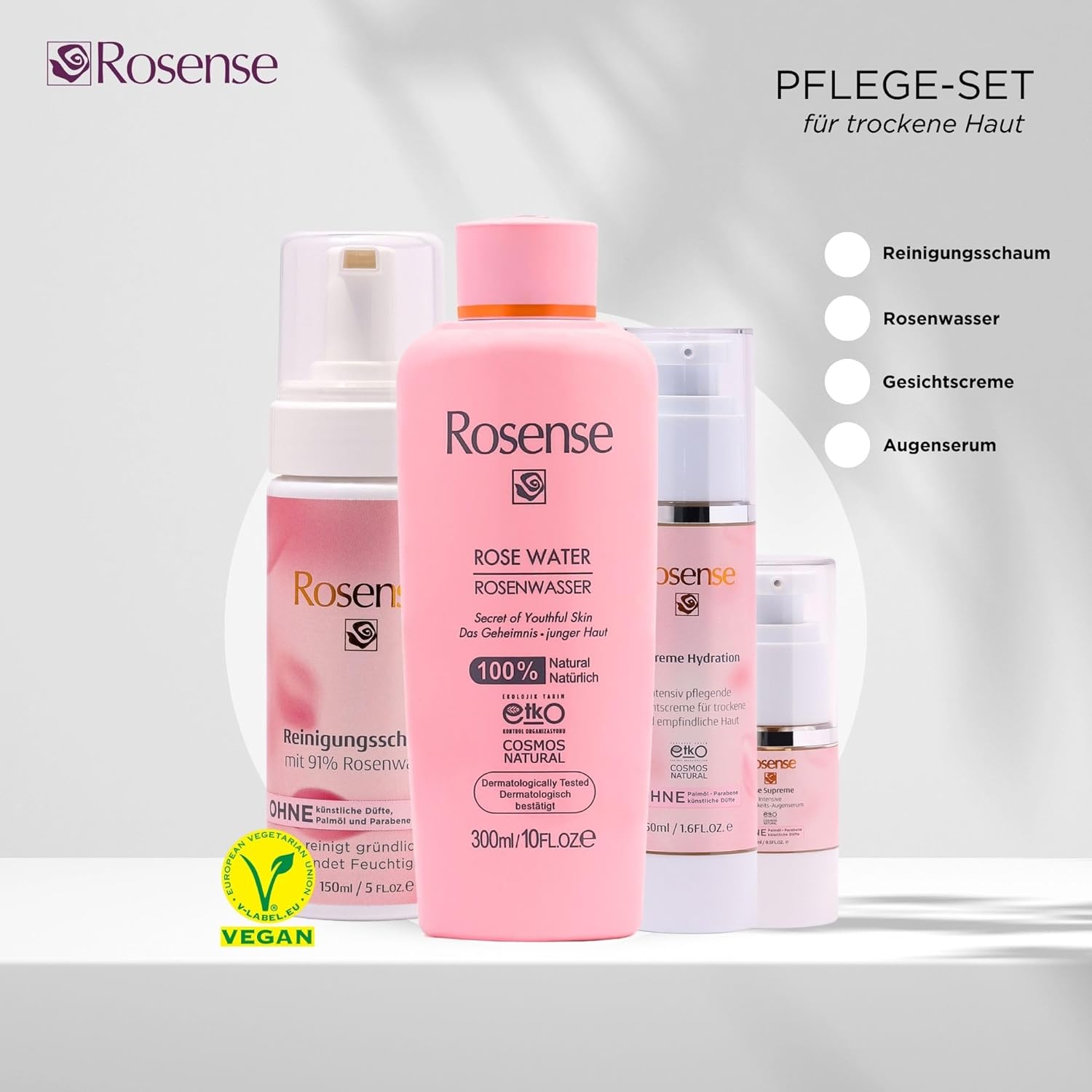 De zoektocht naar de perfecte huidverzorging eindigt hier met de Rosense verzorgingsset voor droge en gevoelige huid. Deze set biedt volledige verzorging in vier stappen: