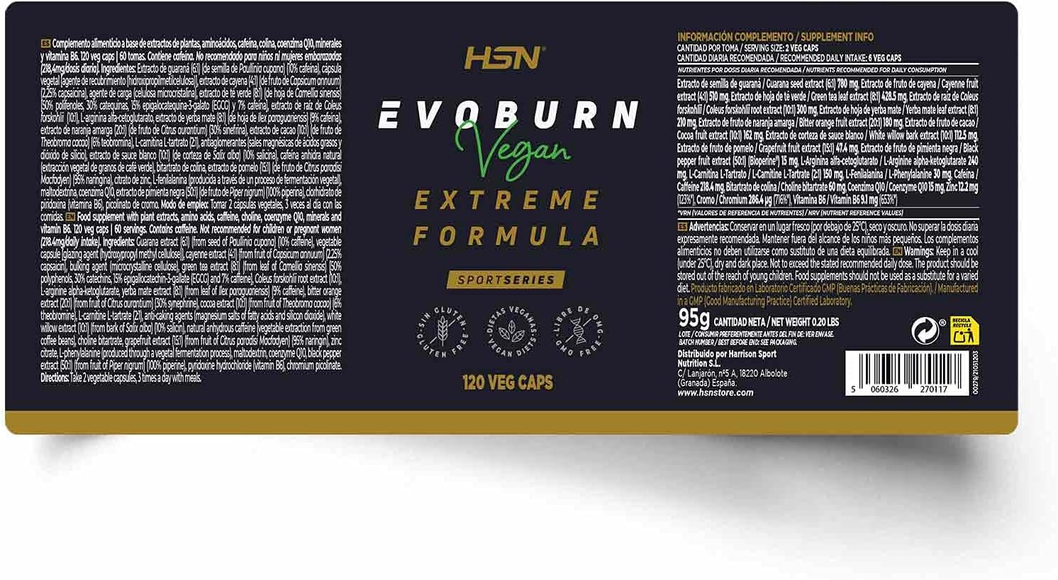 Vetverbrander voor HSN | Evoburn | Krachtig Thermogeen Vermageringsdieet voor Vrouwen en Mannen | Vetverbrander, Eetlustonderdrukker, Cafeïne, Groene Thee, Guarana | Glutenvrij, 120 Caps