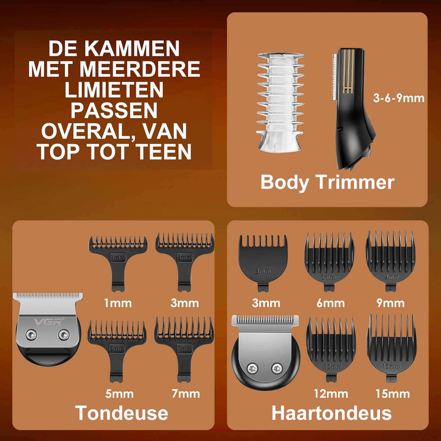 VGR Baardtrimmer voor mannen, professionele baardverzorgingsset voor heren, elektrische scheerapparaten, scheerapparaten, draadloze tondeuses voor gezicht, lichaam, neus, snor, ballen, geschenken voor