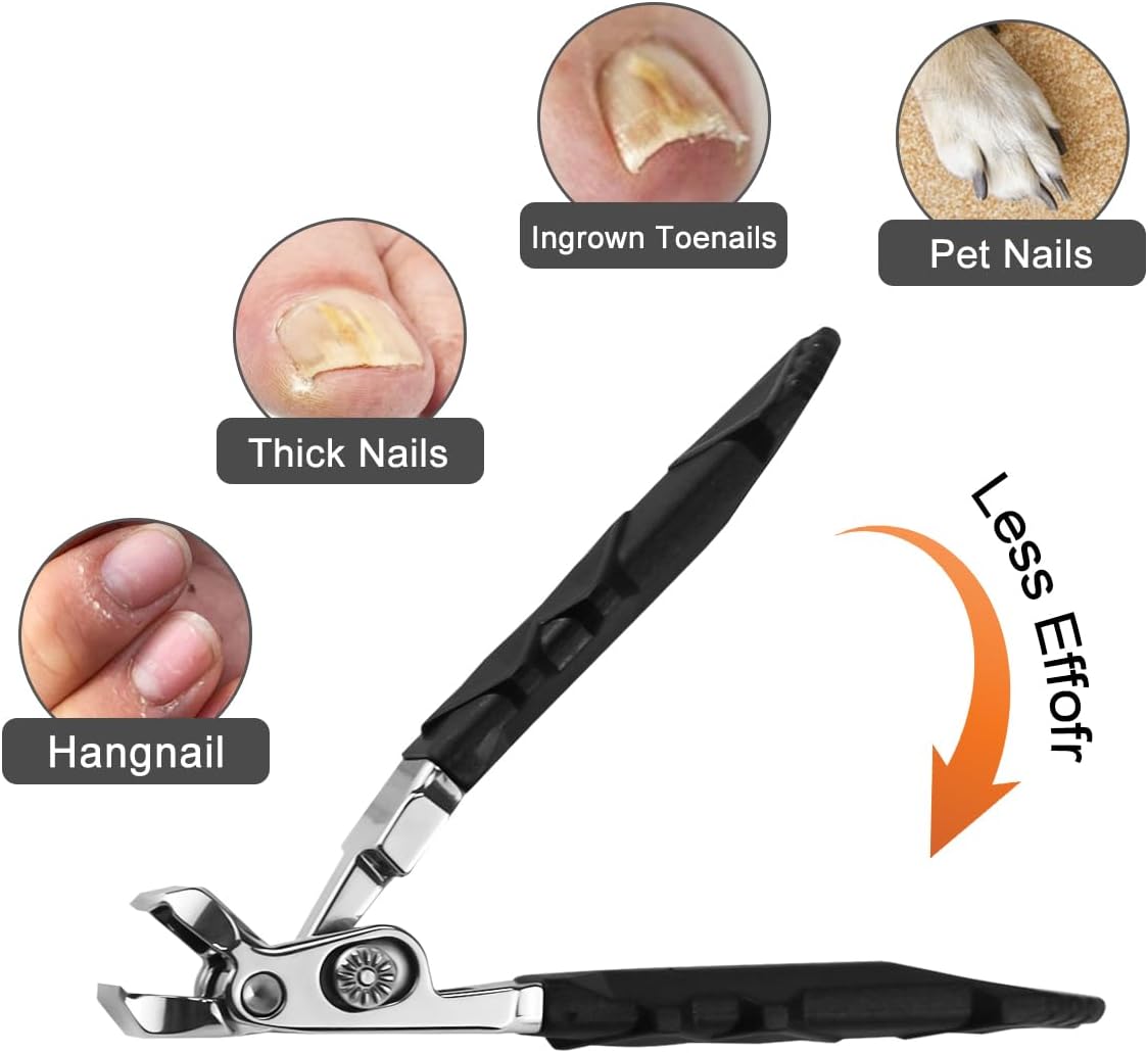 Outfany roestvrijstalen teennagelknipper met gebogen dubbele messen maakt het mogelijk om dikke nagels gemakkelijk te knippen en beschermen tegen breuk en ingegroeide nagels.