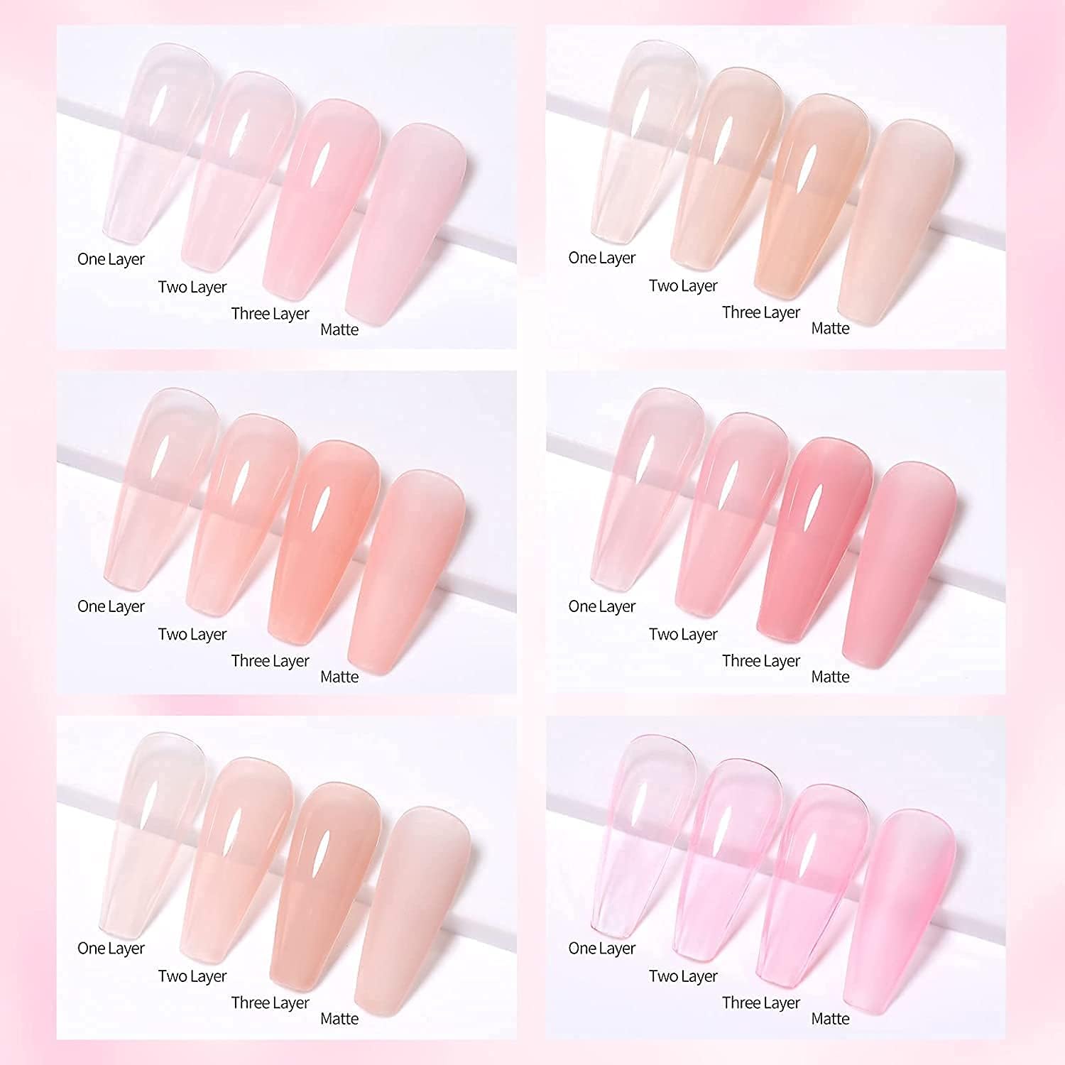 Shellac Starterset – 6 Jelly transparante natuurlijke gel, moet voor 90 tot 120 seconden onder uv-ledlicht worden uitgehard. En je kunt ook voor beginners genieten van het plezier van de nageldecoratie.