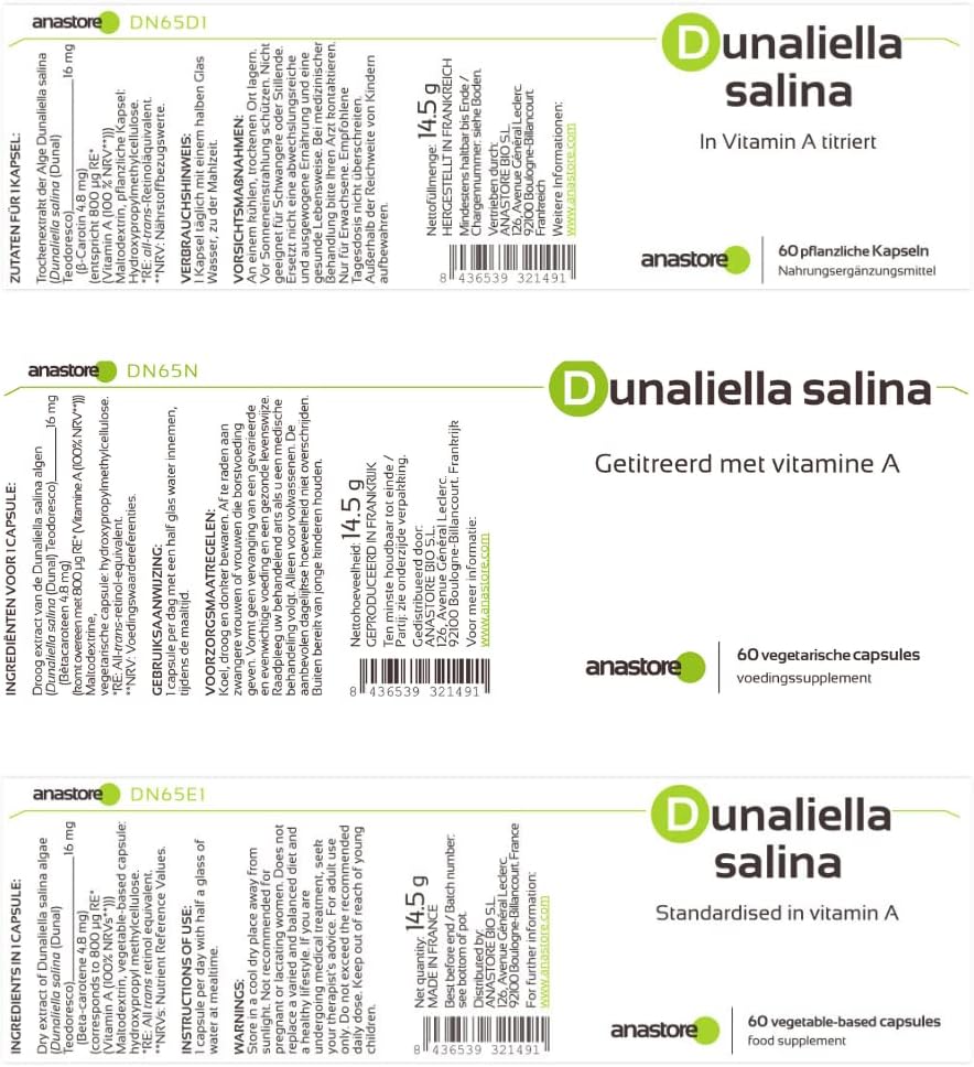 VITAMIN A (RETINOL) * 16 mg / 60 capsules * standardised to contain 30% beta-carotene * Dunaliella salina, vegetable origin