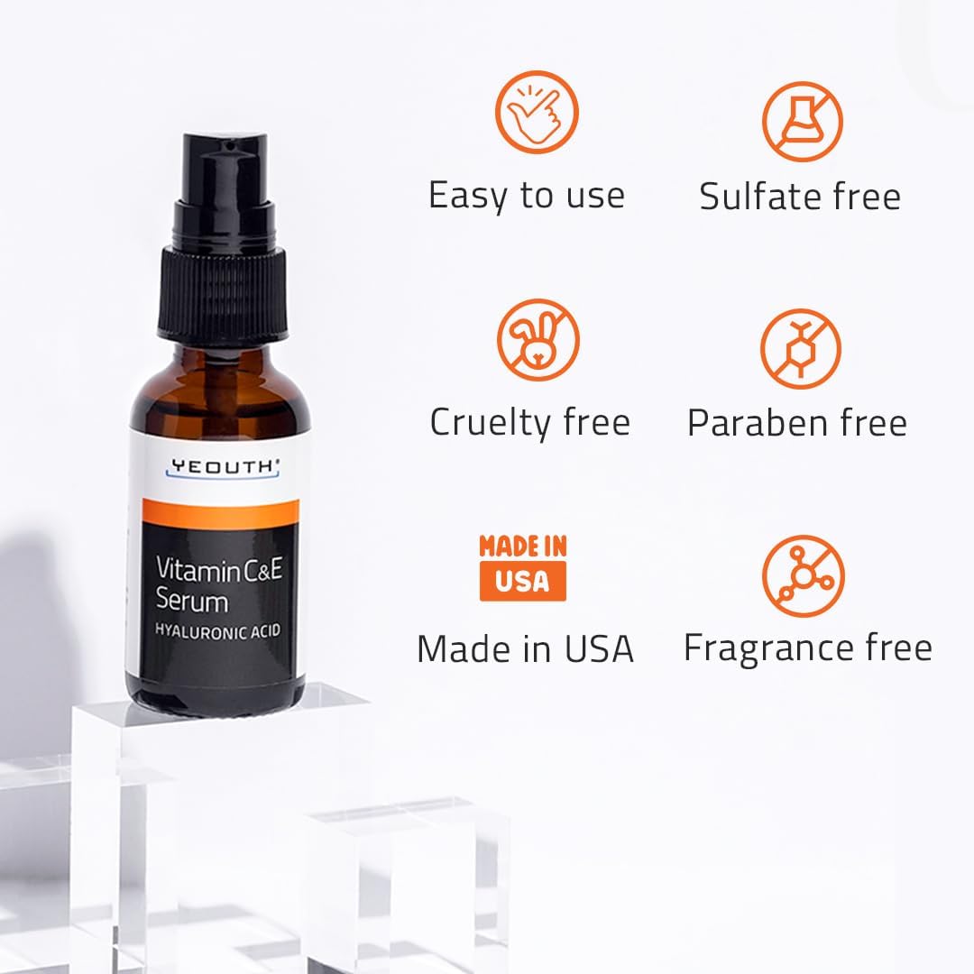 YEOUTH Vitamine C Serum met Hyaluronzuur Serum. Eigendom van een Cosmetisch Chemicus. Natuurlijk, zonder parabenen. Dermatologisch getest. Voeg dit gezichtsserum vandaag nog toe aan UW huidverzorgingsroutine!