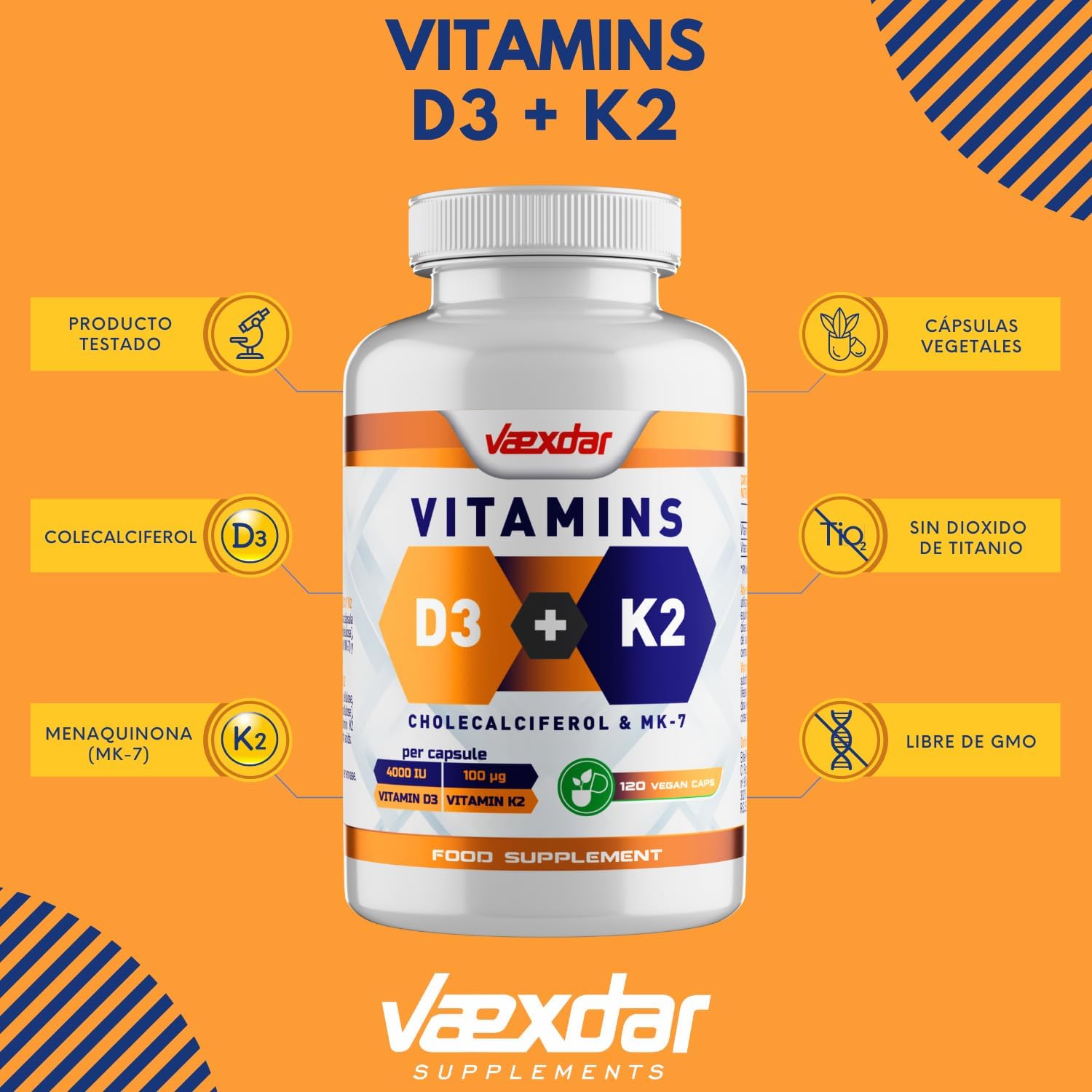 👉 Presentación y envaseLas vitaminas vienen en un frasco blanco que protege eficazmente las cápsulas en su interior. El envase es robusto y viene bien sellado, asegurando la frescura y calidad de las vitaminas hasta el momento de su consumo.👉 Cápsulas y dosisLas cápsulas son de tamaño estándar, lo que facilita su ingesta. En el frasco vienen 120 unidades, y según las instrucciones, se toma una cápsula al día, proporcionando un suministro para 4 meses.👉 Beneficios de las Vitaminas D3 y K2La vitamina D3 es esencial para la absorción de calcio en el cuerpo, lo que ayuda a mantener huesos y dientes fuertes. Además, juega un papel crucial en el sistema inmunológico, ayudando a combatir infecciones. La vitamina K2, por su parte, es importante para la salud cardiovascular y ósea, ya que ayuda a dirigir el calcio a los lugares correctos (huesos y dientes) y evita que se deposite en arterias y otros tejidos blandos.👉 Instrucciones y UsoLas instrucciones vienen en inglés y español, facilitando su comprensión para una mayor audiencia. Es recomendable leerlas y saber qué es lo que estás ingiriendo.