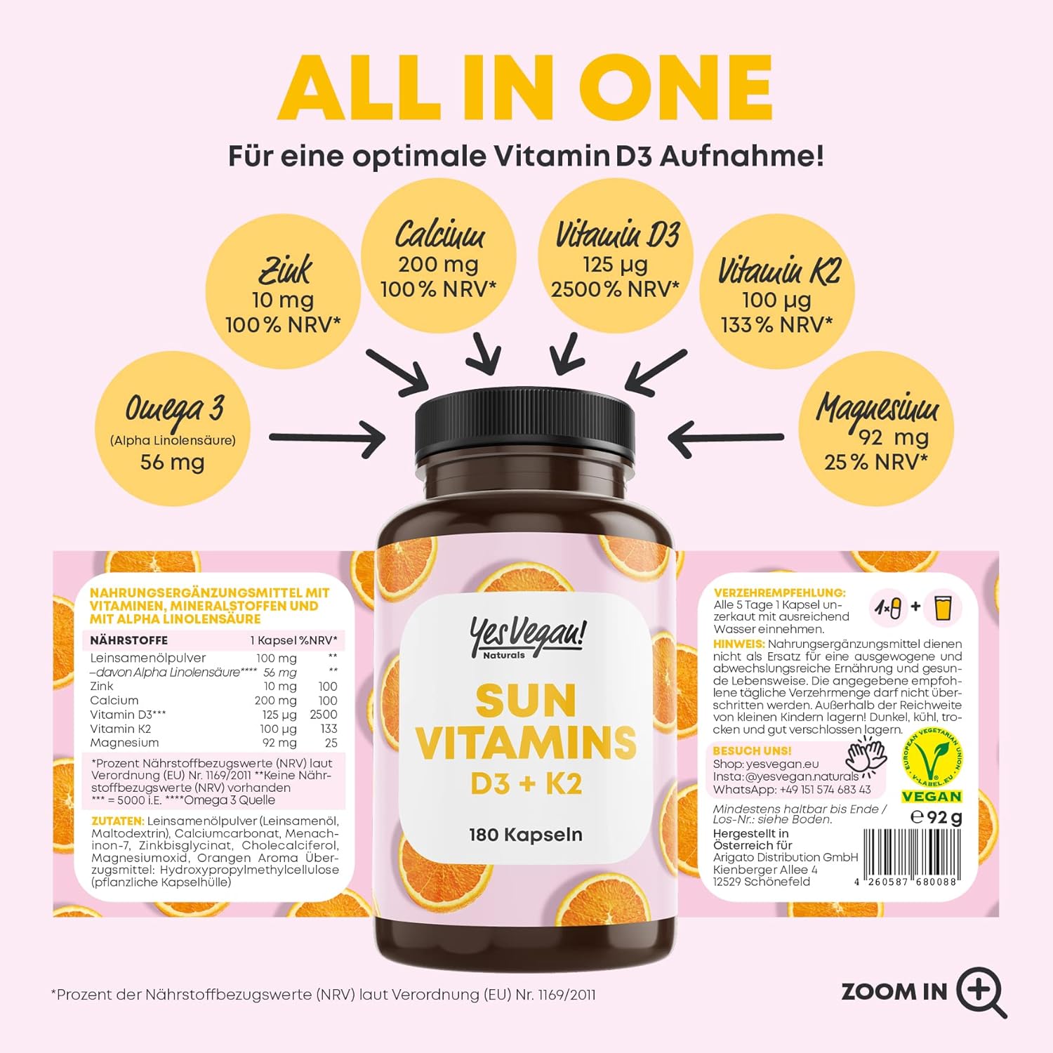 🌱 Optimale beschikbaarheid – om vitamine D3 optimaal door het lichaam te kunnen opnemen, heb je omega 3, vitamine K2, calcium, magnesium en zink nodig. Dit alles zit in een capsule.