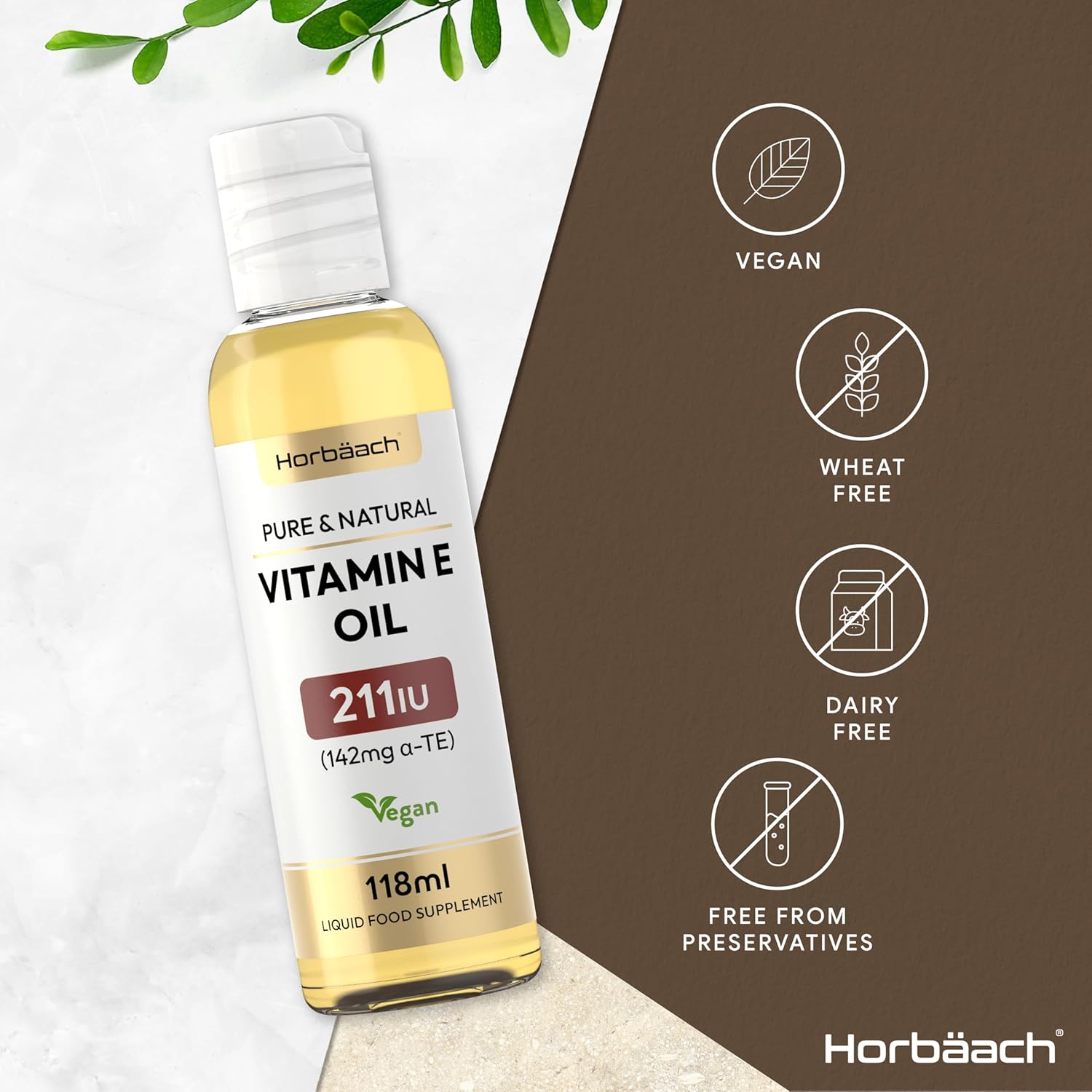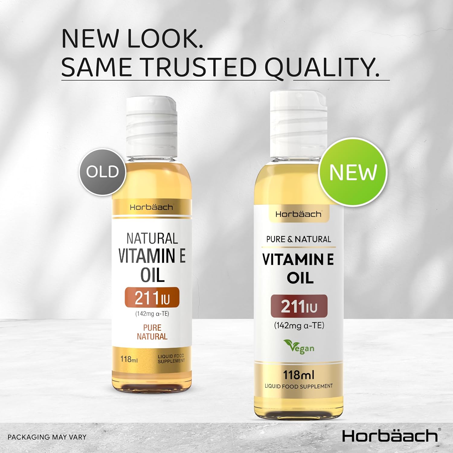 PURE VLOEIBARE VITAMINE E-OLIE: Verbeter uw huid op natuurlijke wijze met Horbaach Vitamine E-olie, omdat deze perfect is voor zowel consumptie als plaatselijk gebruik.
