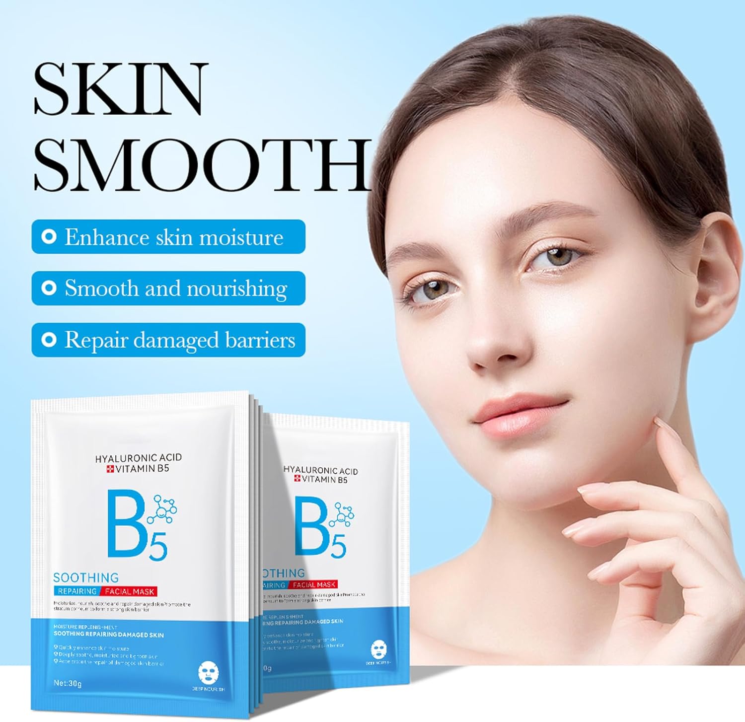 Vitaminen B5 Hyaluronzuur Kalmerende Reparatie Gezichtsmaskers – Hydraterende En Voedende Gezichtsmaskers Met Hyaluronzuur En Vitamine B5, Geschikt Voor Droge Huid, 12 Stuks