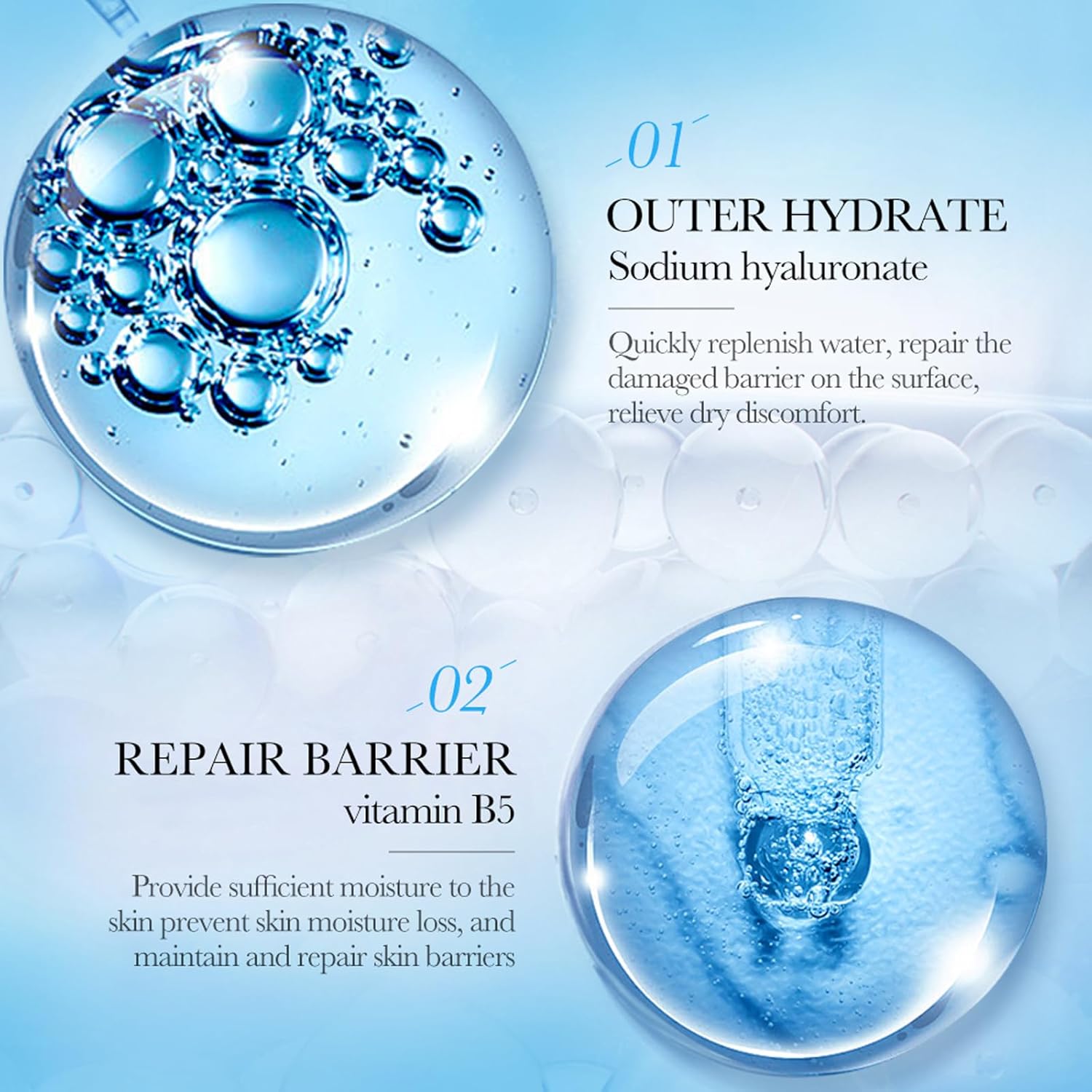Hydraterend en voedzaam: verrijkt met vitamine B5, een sterke vochtiger, helpt vocht te blokkeren en je huid zacht en soepel te maken. Ze zijn perfect voor het herleven van een droge of vermoeide huid en bieden een onmiddellijke vochtboost die je teint fris en stralend uitziet.