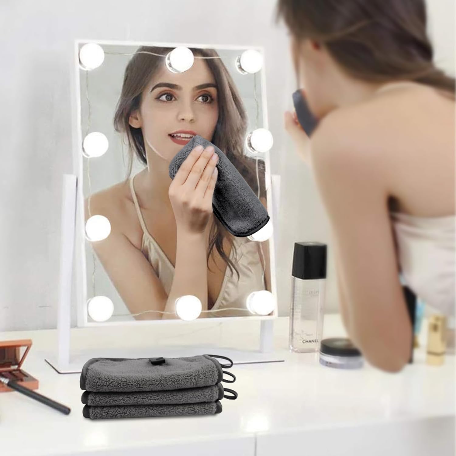 VIVOTE Premium make-up remover doeken milieuvriendelijke zachte microvezel gezichtsdoeken herbruikbare gezichtsreinigingsdoekjes voor eenvoudige gezichtsreiniging 15 x 30 cm 4 stuks (donkergrijs)