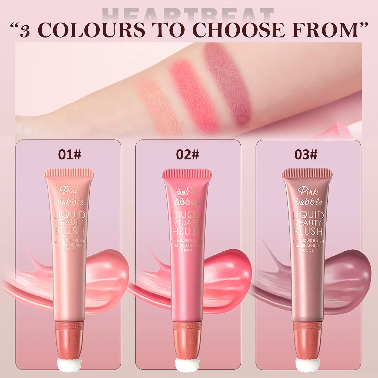 3. Gebruiksaanwijzing: dep 2-3 stippen vloeibare blush op de gebieden die u wilt kleuren en breng vervolgens gelijkmatig aan met de borstel of uw vingers om de gewenste look te krijgen.