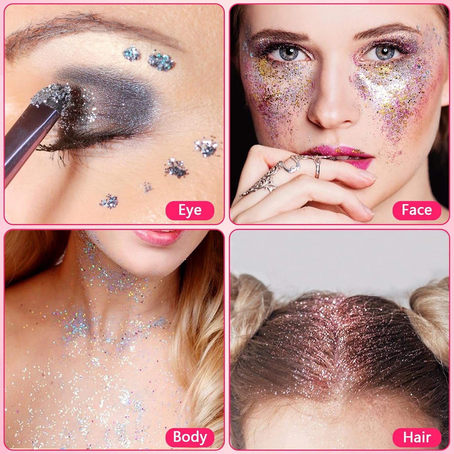 Ideale decoratieve glitterpoederset voor verschillende knutselprojecten, nagelkunst, make-up, lichaamskunst, kaarten maken en andere doe-het-zelfprojecten.