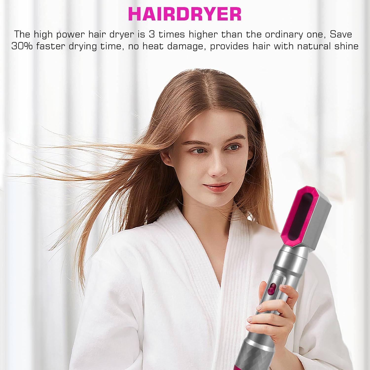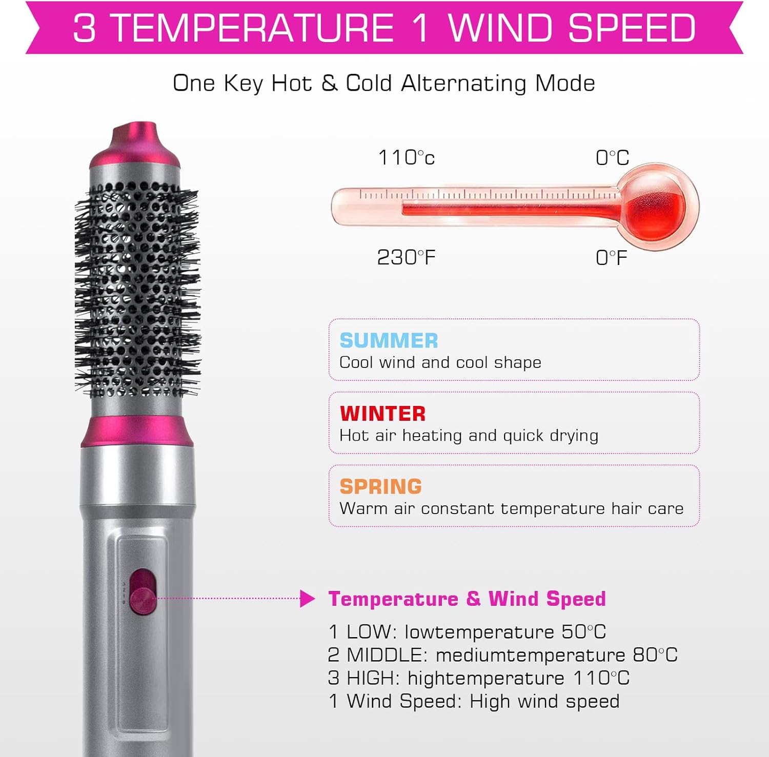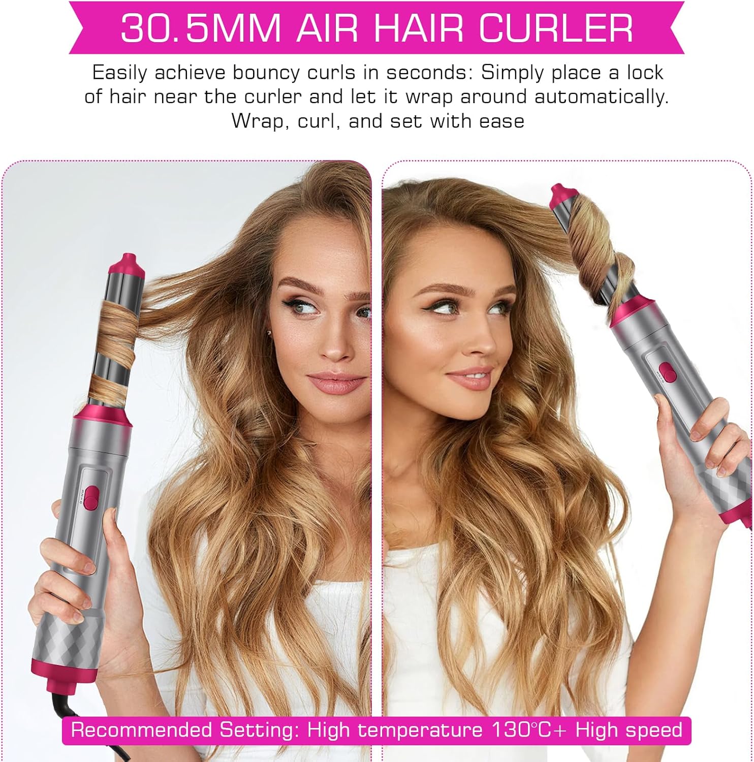 Warmeluchtborstelset, 1000 W negatieve lonen haarstyler, multifunctionele haarstyler met automatische krultang, stijltang, borstel, thermische borstel voor vrouwen, drogen, glad maken, volume krullen