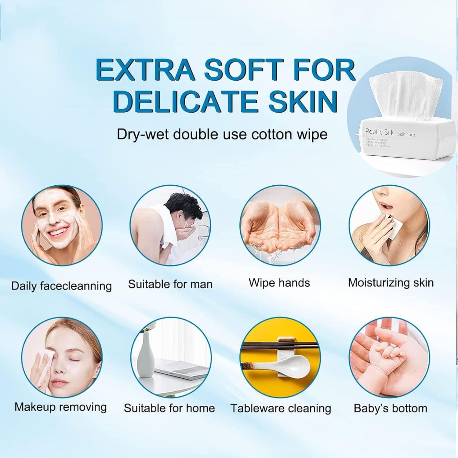 Wegwerp gezichtshanddoek, BIEWO Katoenen Weefsel Zachte Droge Doekjes voor Vrouwen, Eenvoudige Reiniging Gezichtsweefsels Droog Nat Dubbel Draagbaar Gebruik voor Gevoelige Huid & Baby & Make-up