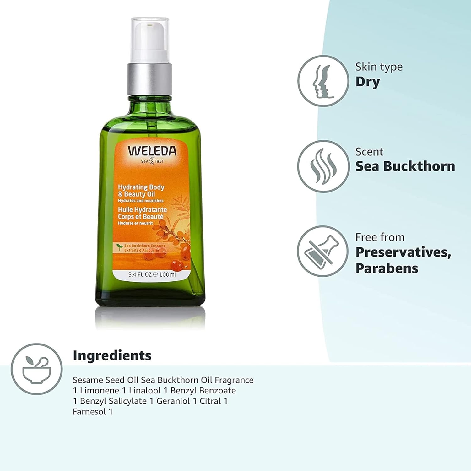 5 reviews for Weleda Sanddoorn Vitaliserende verzorgende olie, natuurlijke cosmetica, lichaamsolie voor de intensieve verzorging van droge huid, bodyolie voor merkbare gladheid en herstel van de huid, 1 x 100 ml