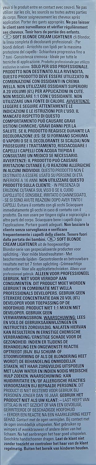 Su consiglio del mio parrucchiere ho preparato una pappina con mezza dose di crema Blondor Soft Blond, mezza dose di polvere Blondor confezione azzurra, 10 gr di polvere Blondor Extra Cool Blond (polvere deco + toner) e due parti di Welloxon 20 volumi: da castano scuro a biondo ultra chiaro in 60 minuti senza un capello rovinato. E io ho un capello che butta arancione sempre tant’è che prima, con solo polvere, dovevo decolorare a 20 per 50 minuti due volte prima di fare il toner bianco. Quindi certo che lo consiglio, consiglio tutta la linea!!!