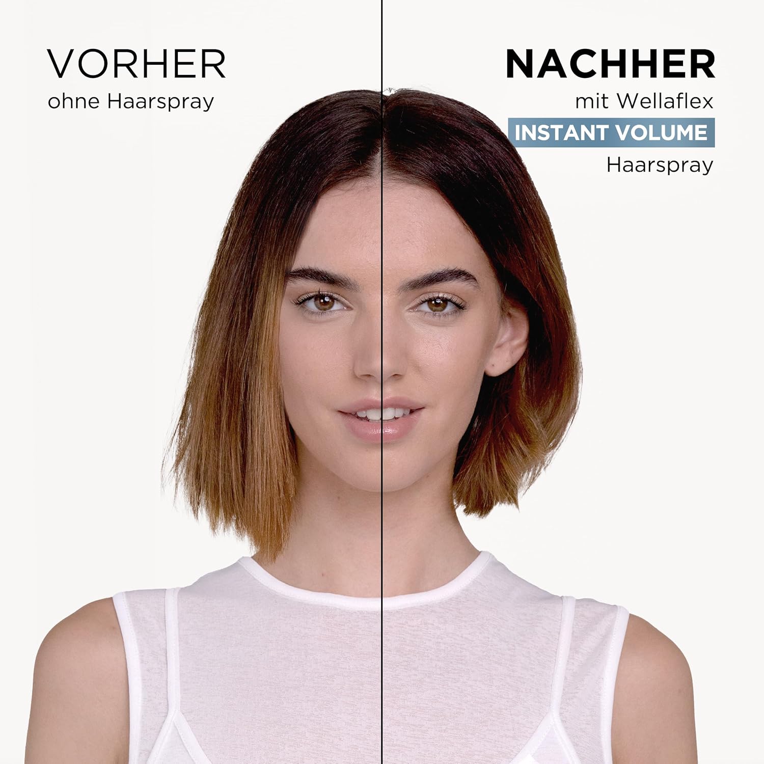 Wellaflex Instant Volume Haarspray voor vrouwen, tot 48 uur extra sterke grip, volumineuze styling, zacht voor de hoofdhuid, dermatologisch getest, veganistische formule, houdgraad 4, 250 ml