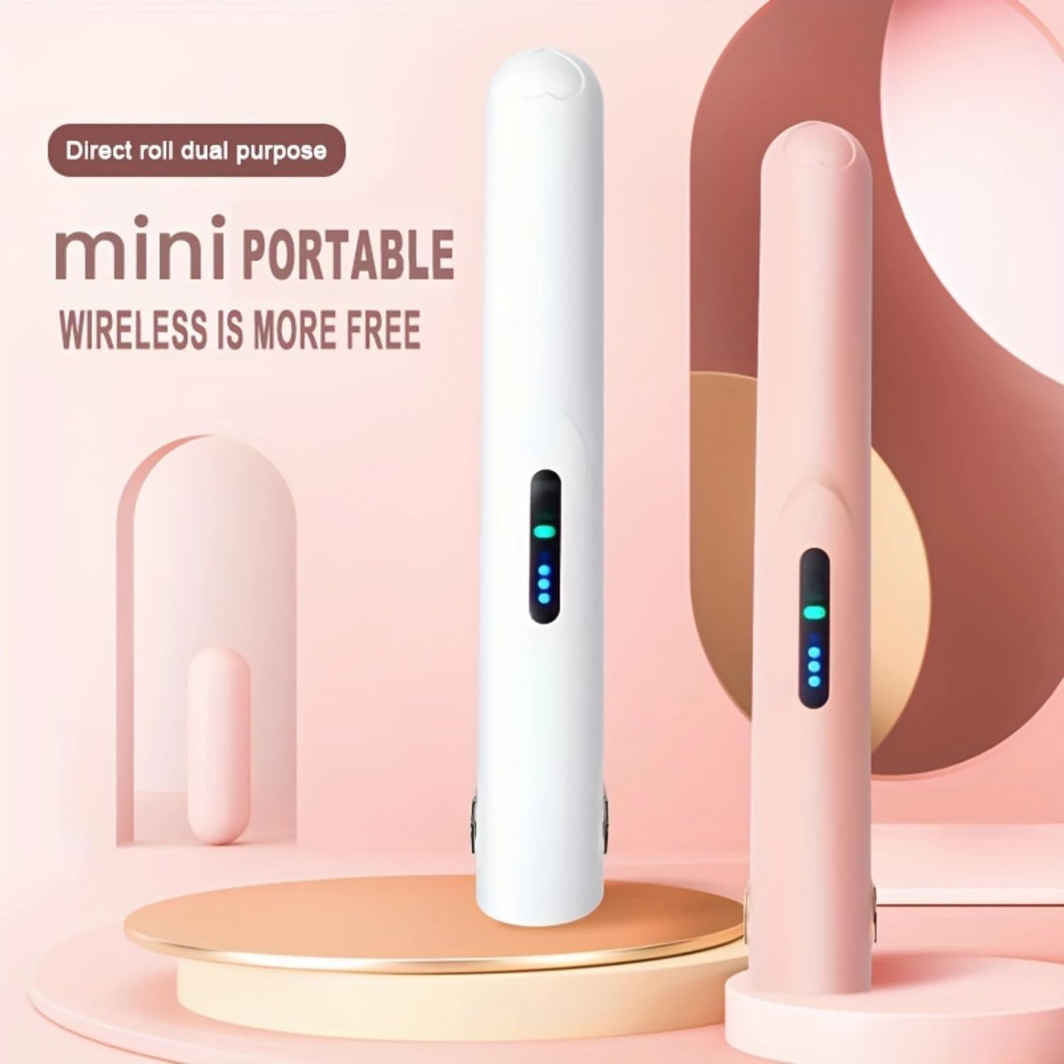 Werwing Mini USB draadloos strijkijzer – 2-in-1 krultang en stijltang met draadloos opladen, reisvriendelijk voor franjes en styling (roze)