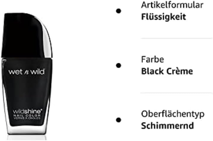 Wet n Wild, Wild Shine Nail Color, Nagellak Zonder Formaldehyde, Tolueen en Ftalaten, Langhoudende en Sneldrogende Formule, Black Crème