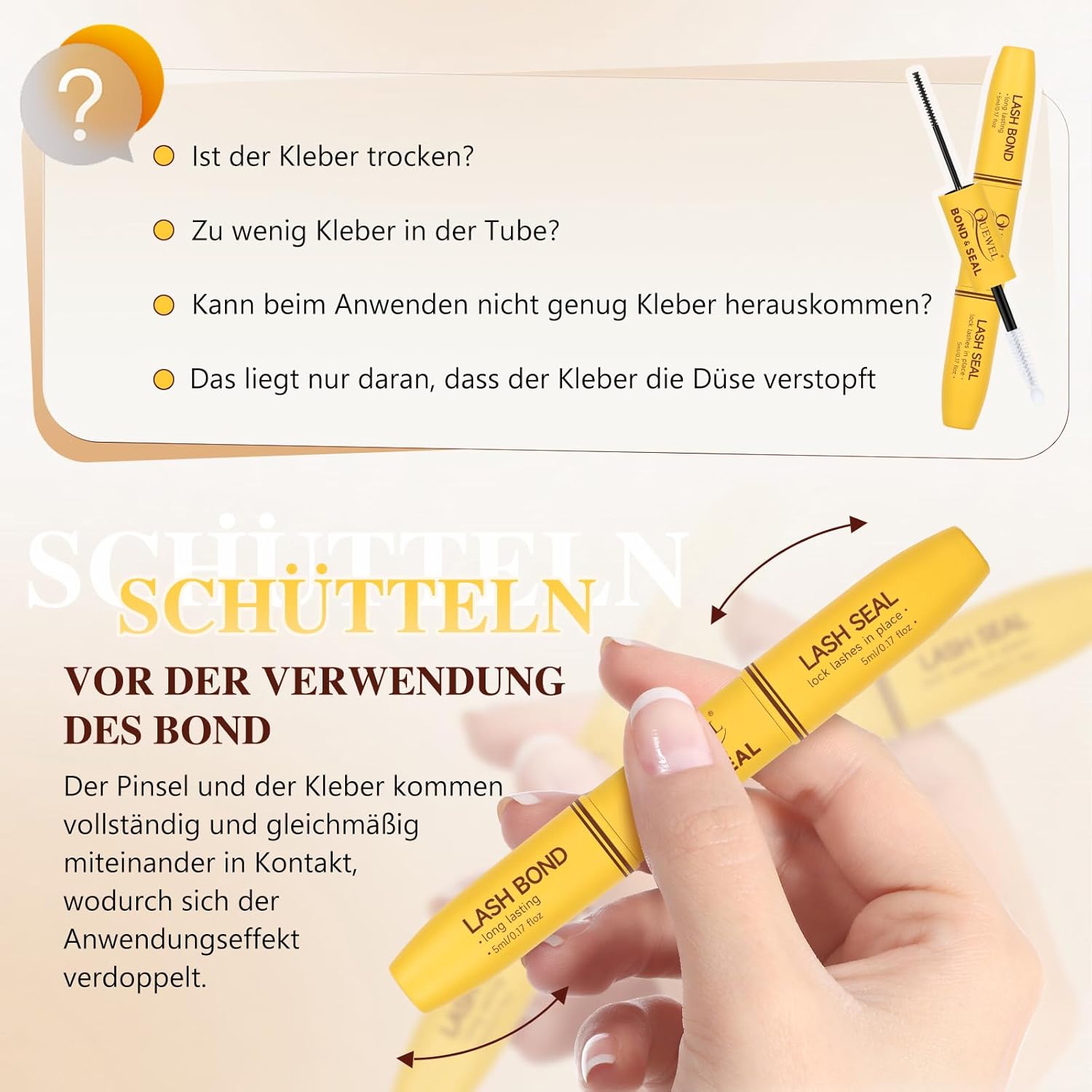 Milde formule: QUEWEL Lash Bond and Seal bevat milde en niet-irriterende ingrediënten, is geschikt om de hele dag te gebruiken en beschadigt de natuurlijke wimpers niet. Bovendien is de lijm zeer eenvoudig te verwijderen. Doe de lijmverwijderaar op een wattenschijfje en plaats het wattenschijfje vervolgens op elke individuele wimper om de lijm op te lossen. Gebruik het in combinatie met een zelfgemaakte wimperextensionsremover zonder resten achter te laten.