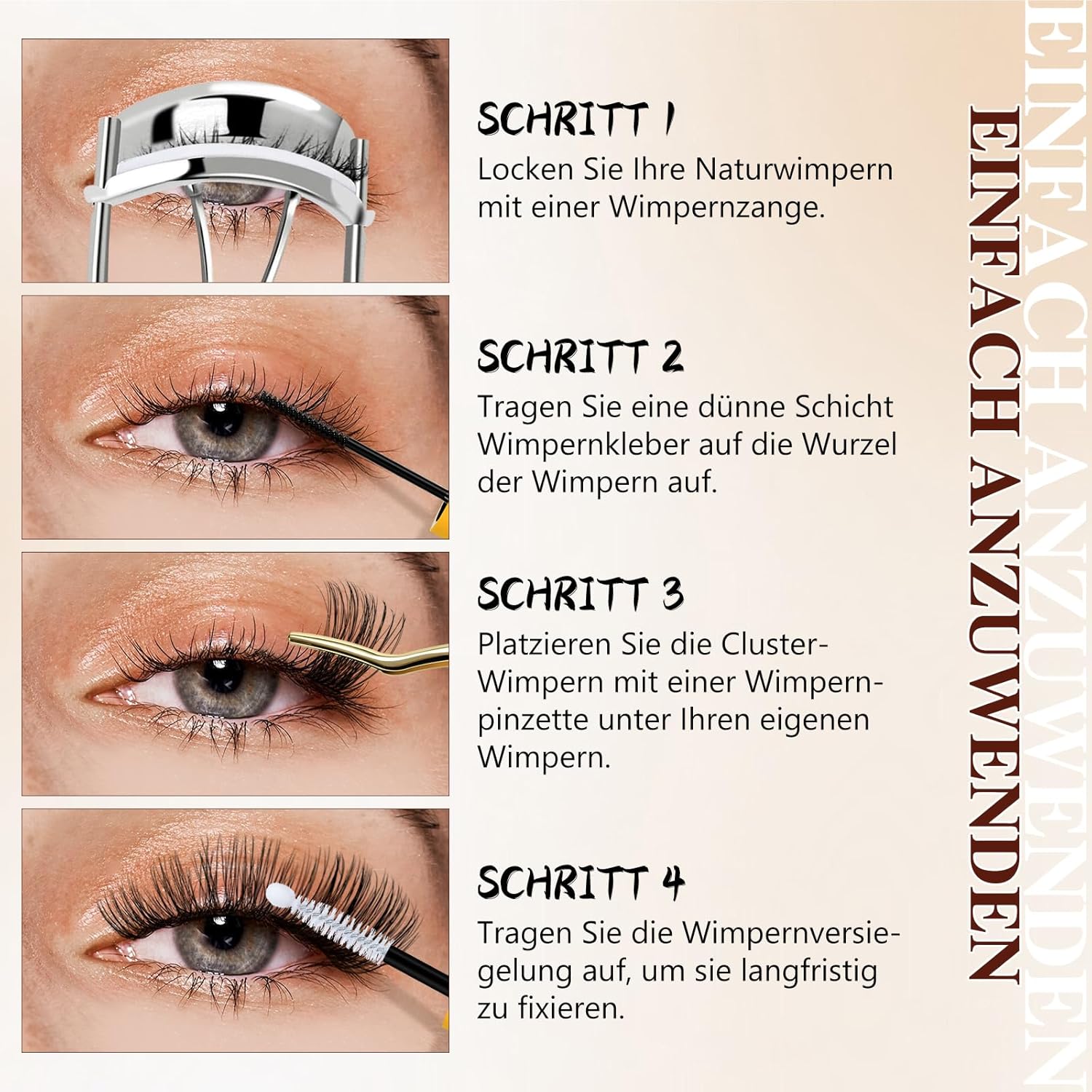 Der kleber ist zu schwach, um die wimpern Cluster zu halten, jedoch zu klebrig für die eigenen wimpern, sodass diese am Augenlid kleben bleiben.Außerdem lässt sich der kleber nicht mit einfachem mizellenwasser oder makeup Entferner (auch wasserfestem) entfernen. Die wipmern müssen mühsam gereinigt werden und das verursacht Haut Reizungen. Klebereste bleiben trotzdem und die wimpern kleben.Kaufe ich nicht nochmal und rate davon ab.