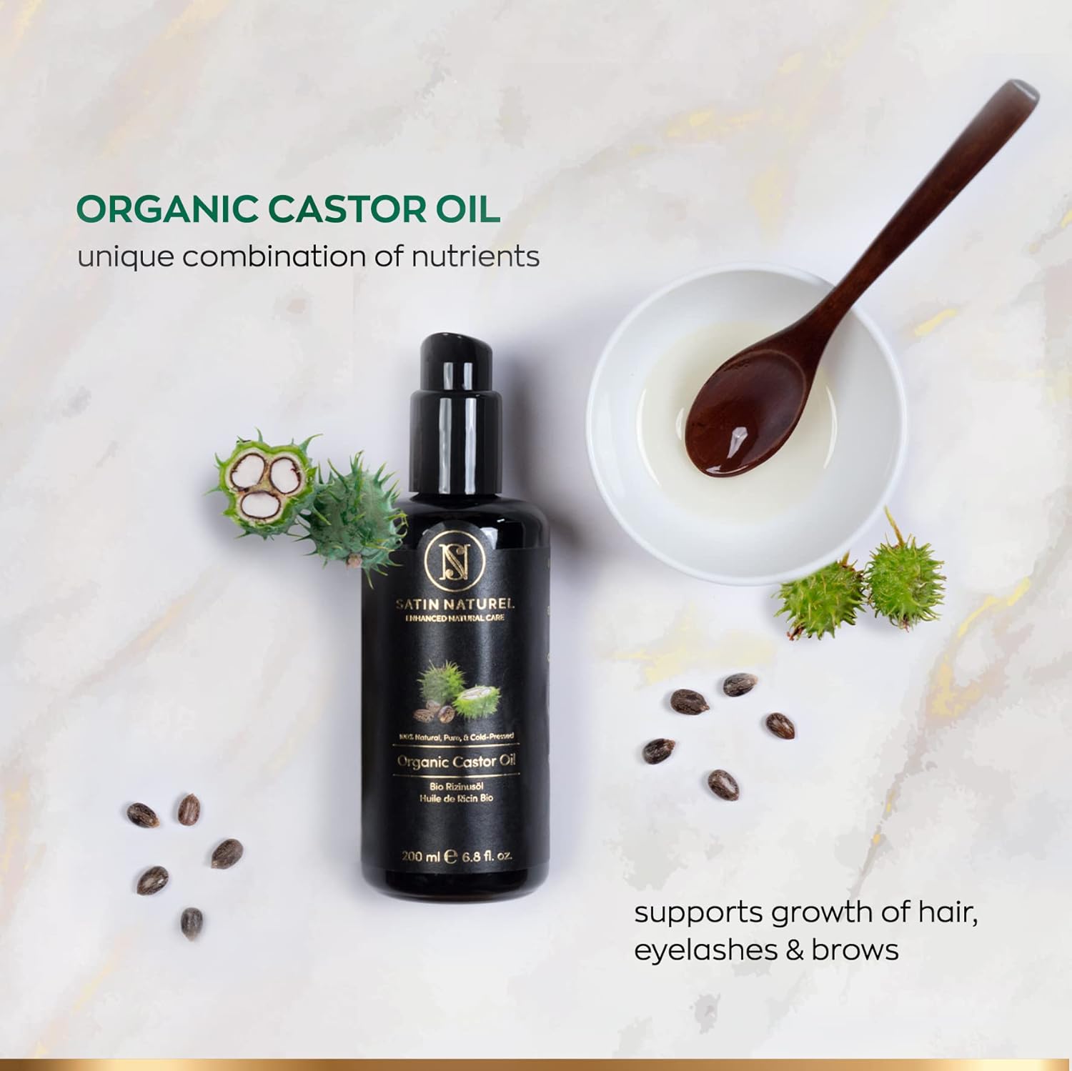 WINNAAR VAN 01/20* BIOLOGISCHE Castorolie – 100% Puur & Koudgeperst – Wonderolie voor Wimpers, Haar, Huid & Nagels – 200ml Fles van Beschermend Violet Glas. Natuurlijke Cosmetica van Satin Naturel